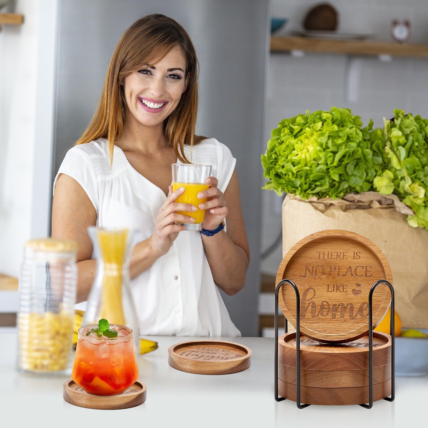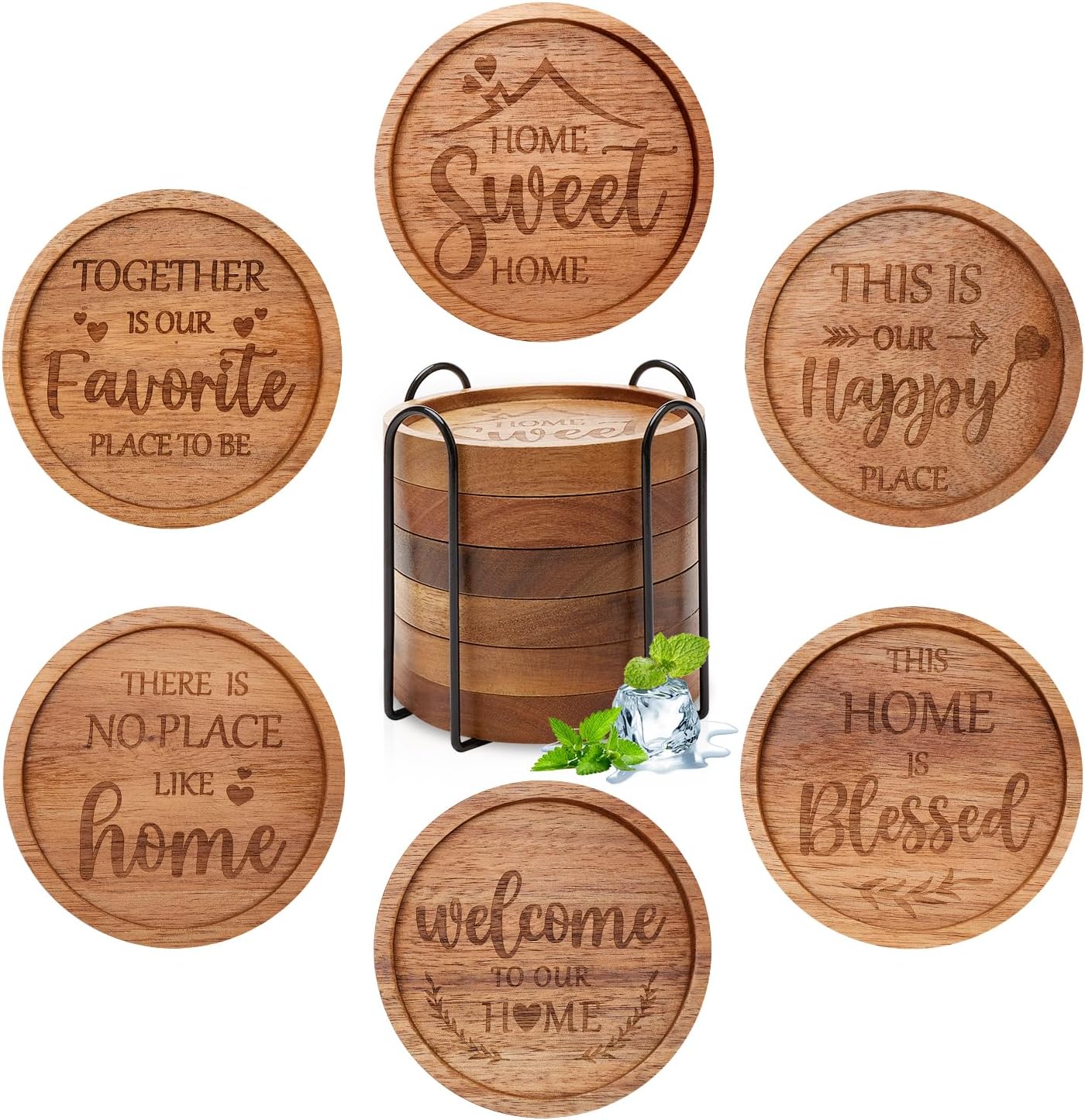 - Each wooden coaster carries housewarming quotes, great as house decorations for home, house warming gifts for new home, family house decor gift.