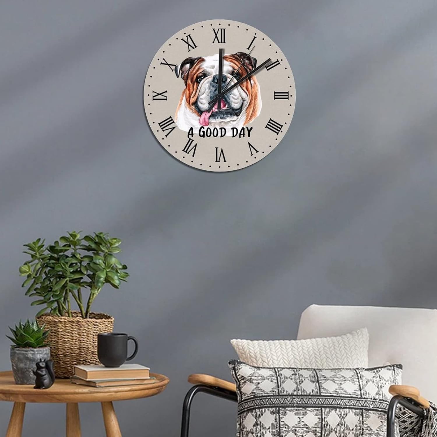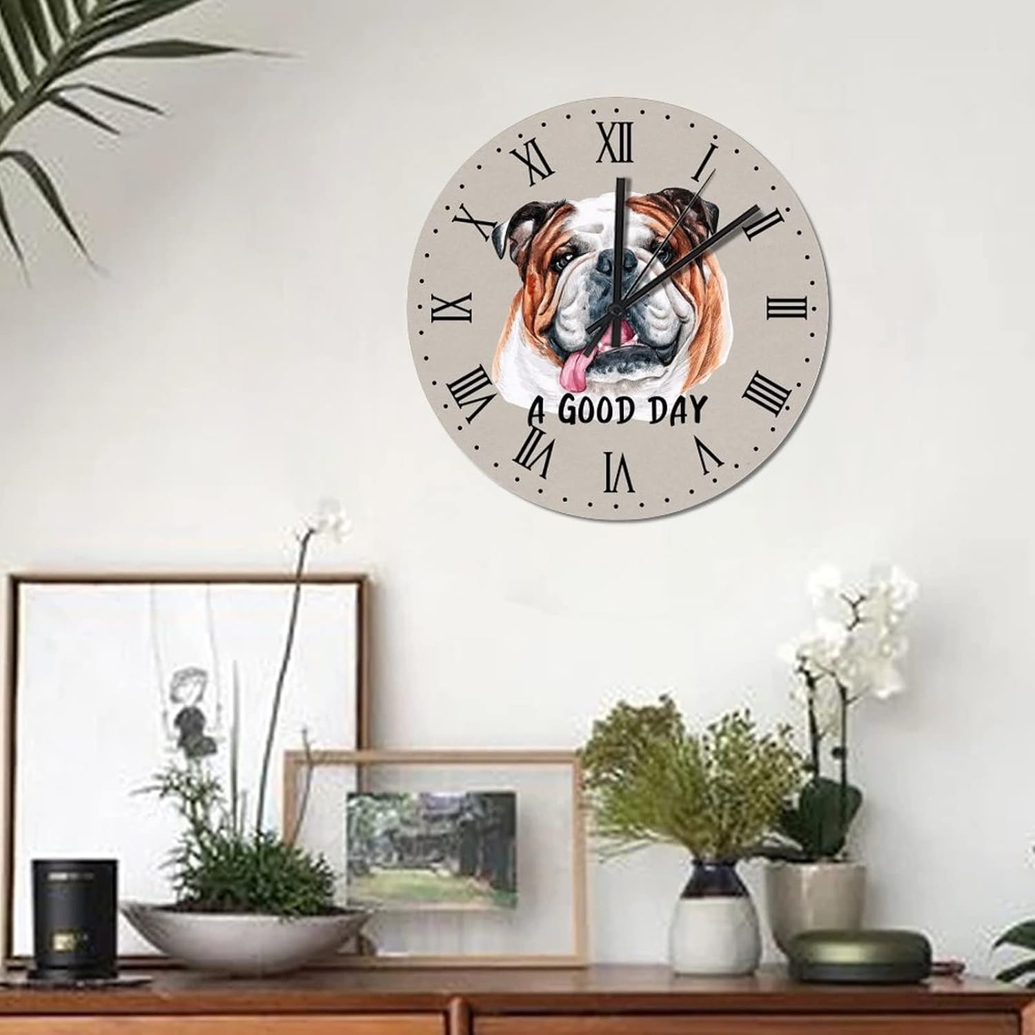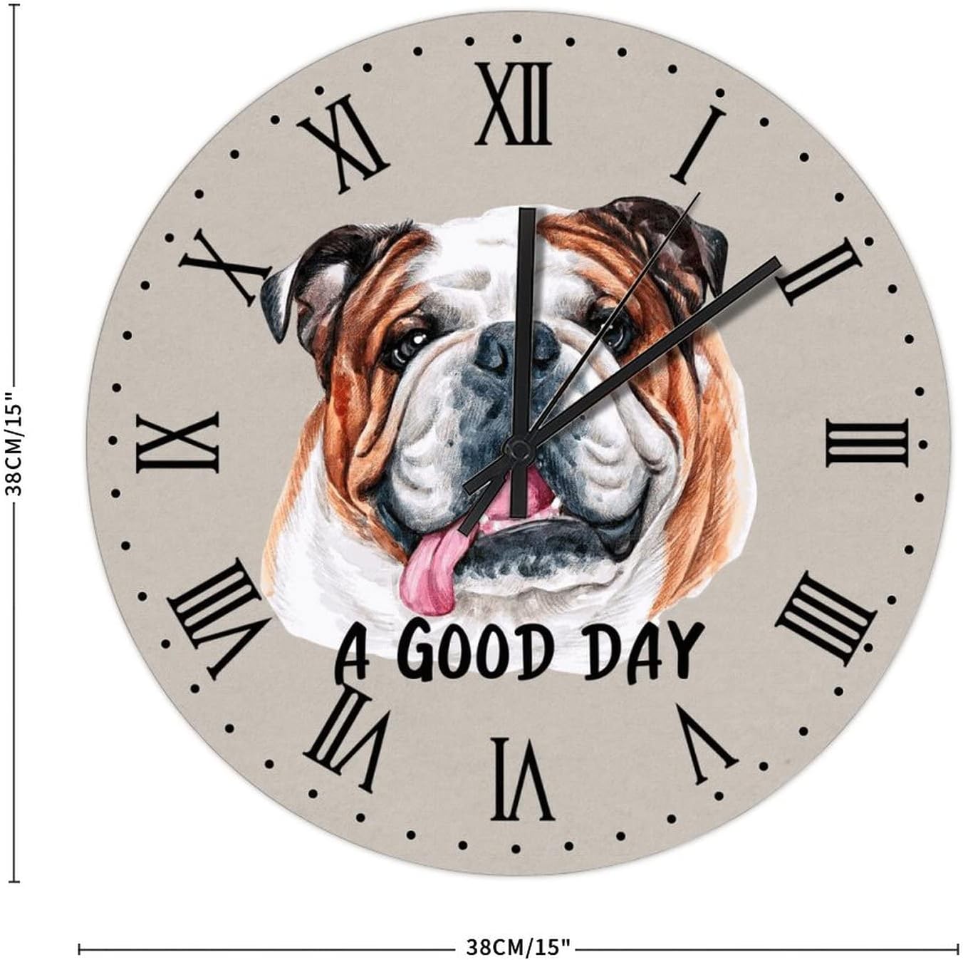 BESTORLOVE Animal Wooden Clocks A Good Day Dog Wood Wall Clock Silent Non-Ticking 15″ x 15″ Round Wall Clock Home Decor Art for Living Room Kitchen Bedroom Ship from US