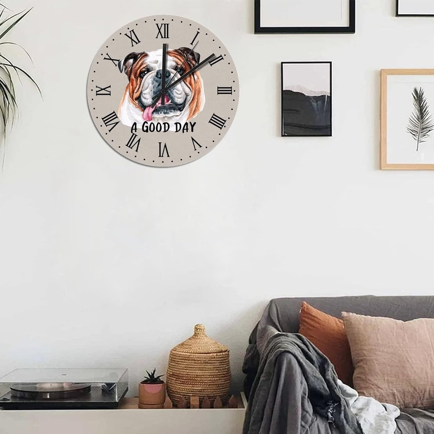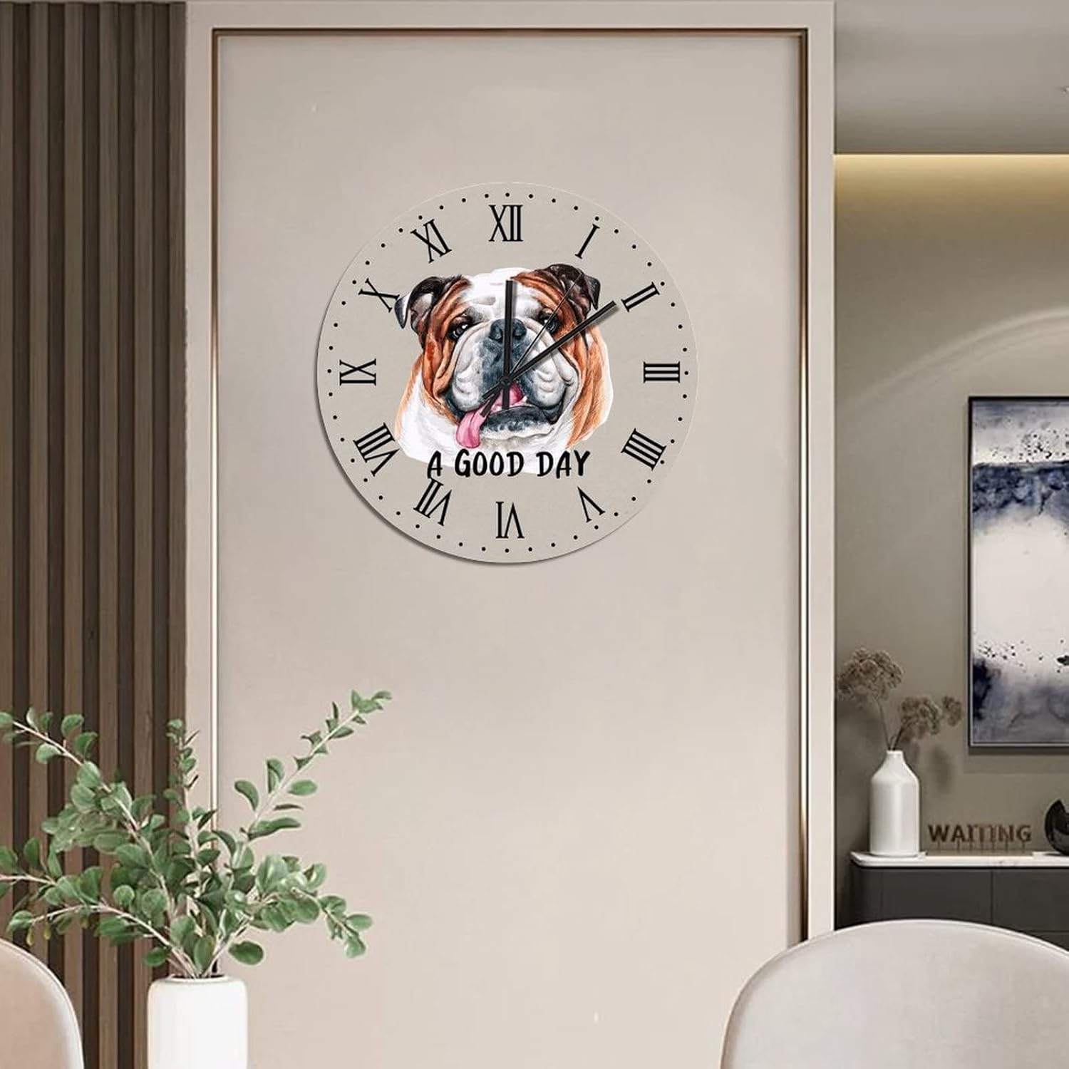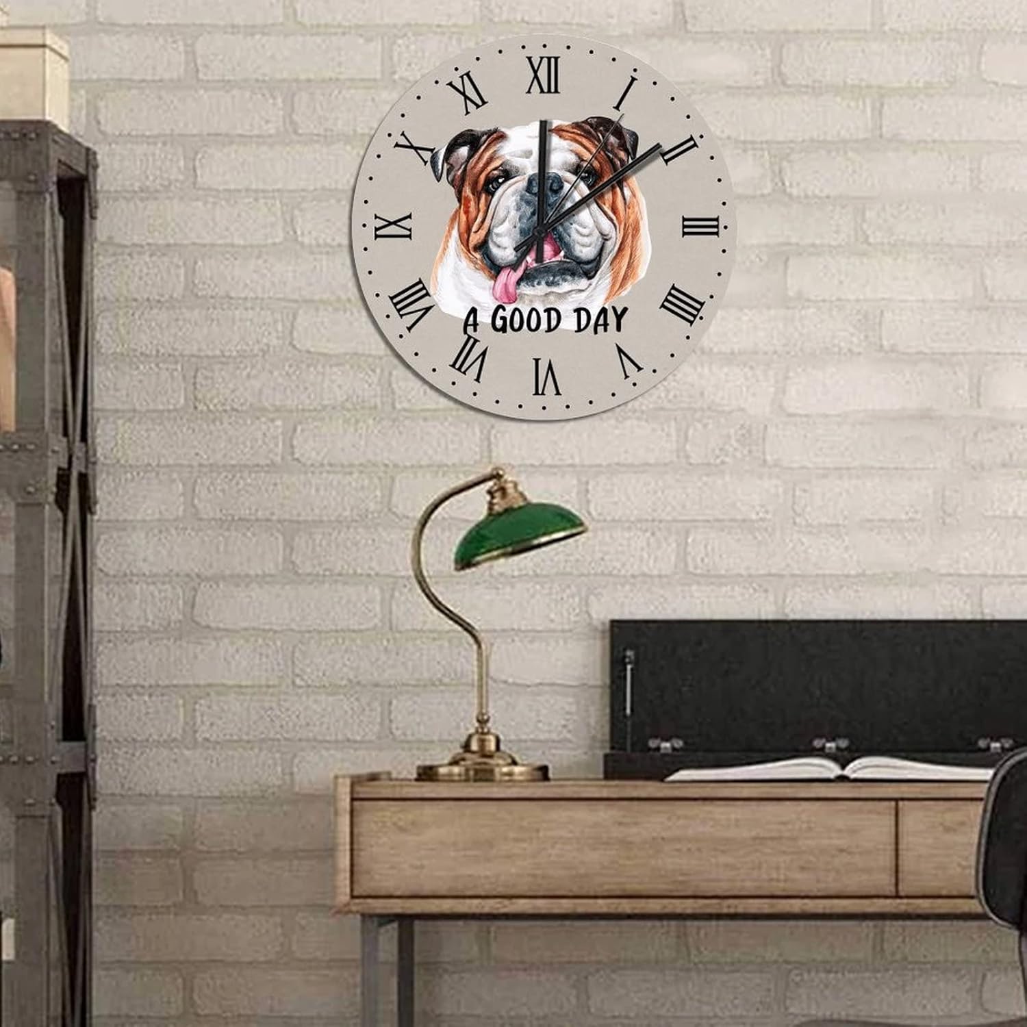 BESTORLOVE Animal Wooden Clocks A Good Day Dog Wood Wall Clock Silent Non-Ticking 15″ x 15″ Round Wall Clock Home Decor Art for Living Room Kitchen Bedroom Ship from US