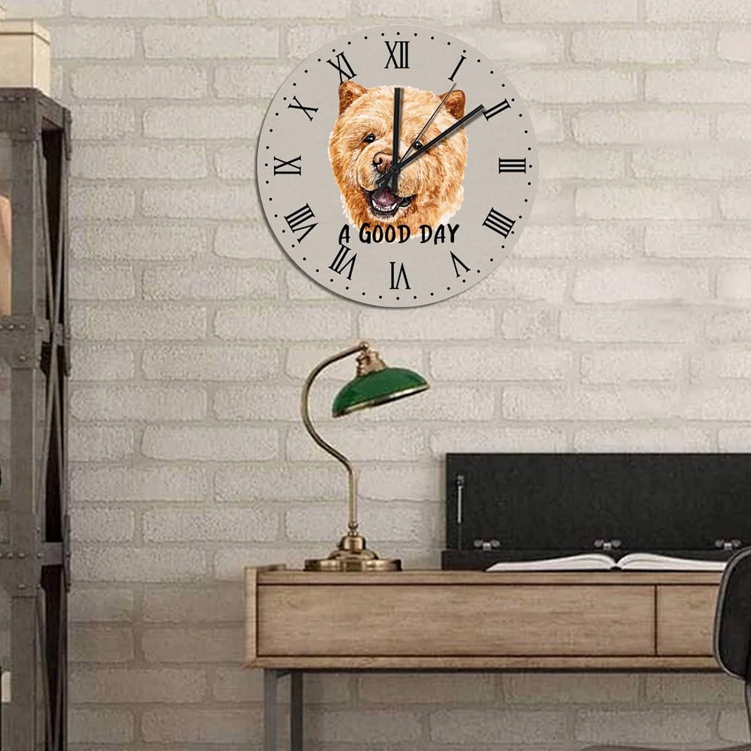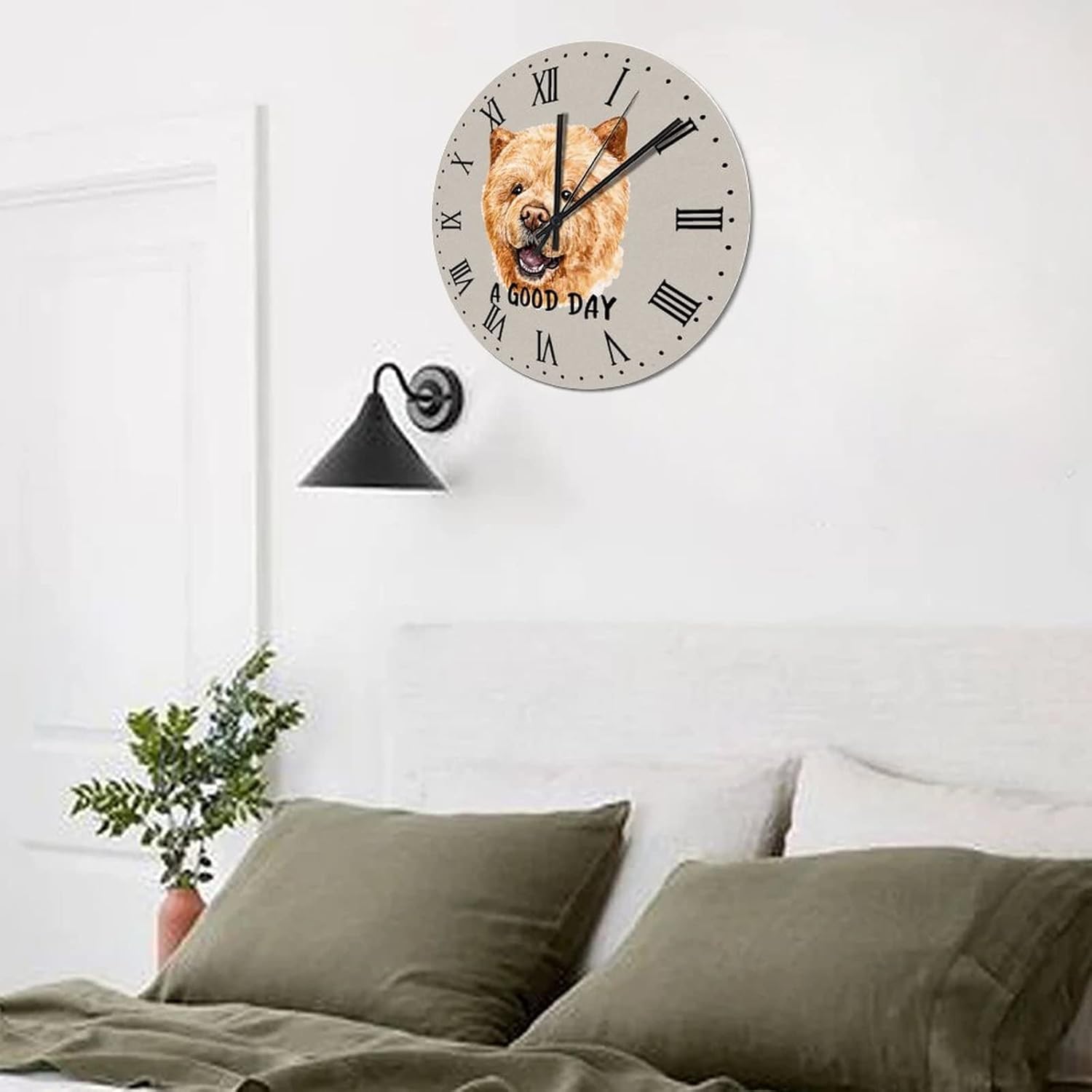 BESTORLOVE Cute Silent Non-Ticking Wood Wall Clock A Good Day Dog Wooden Clocks 15″ x 15″ Round Wall Clock for Living Room Bedroom Home Decorations Ship from US