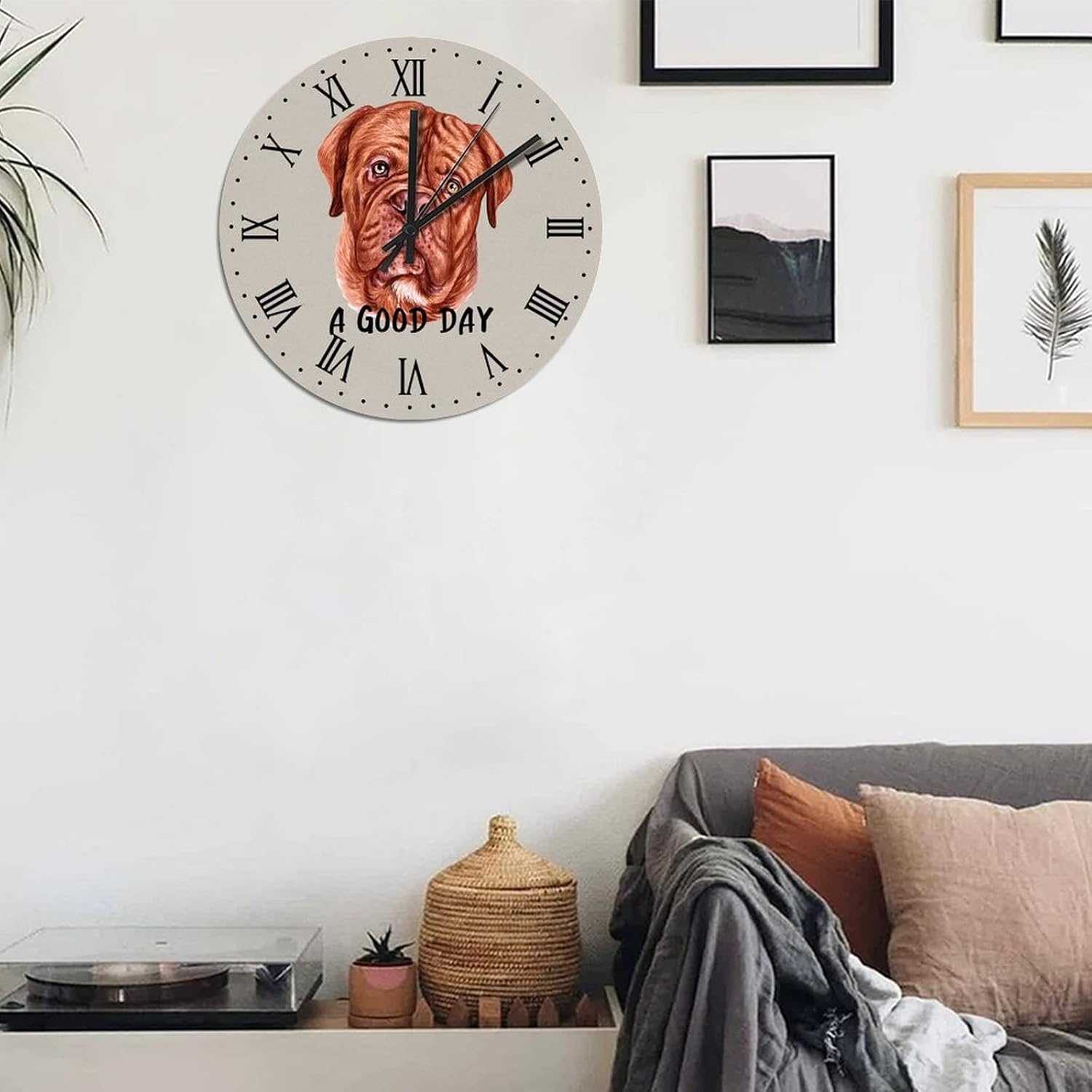 BESTORLOVE Dog Silent Non-Ticking Wood Wall Clock A Good Day Dog Wooden Clocks 15″ x 15″ Round Wall Clock Decor for Home Living Room Bedroom Office Ship from US