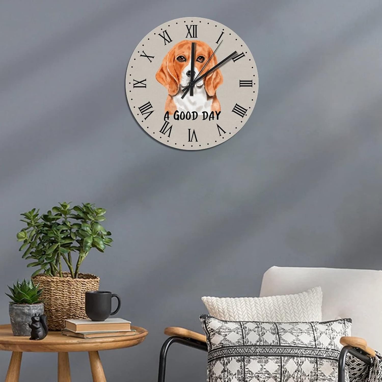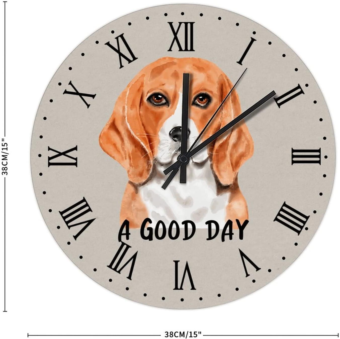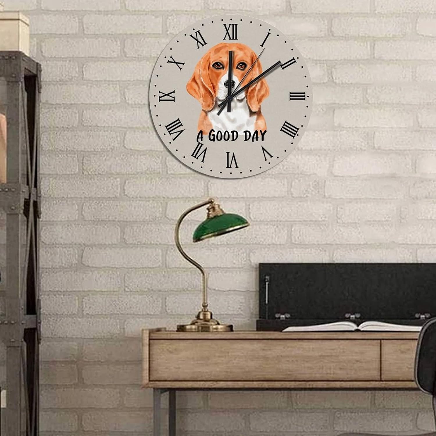 BESTORLOVE Dog Sticking Out Tongue Wooden Clocks A Good Day Dog Wood Wall Clock Silent Non-Ticking 15″ x 15″ Round Wall Clock for Living Room Bedroom Kitchen Home Decorations Ship from US
