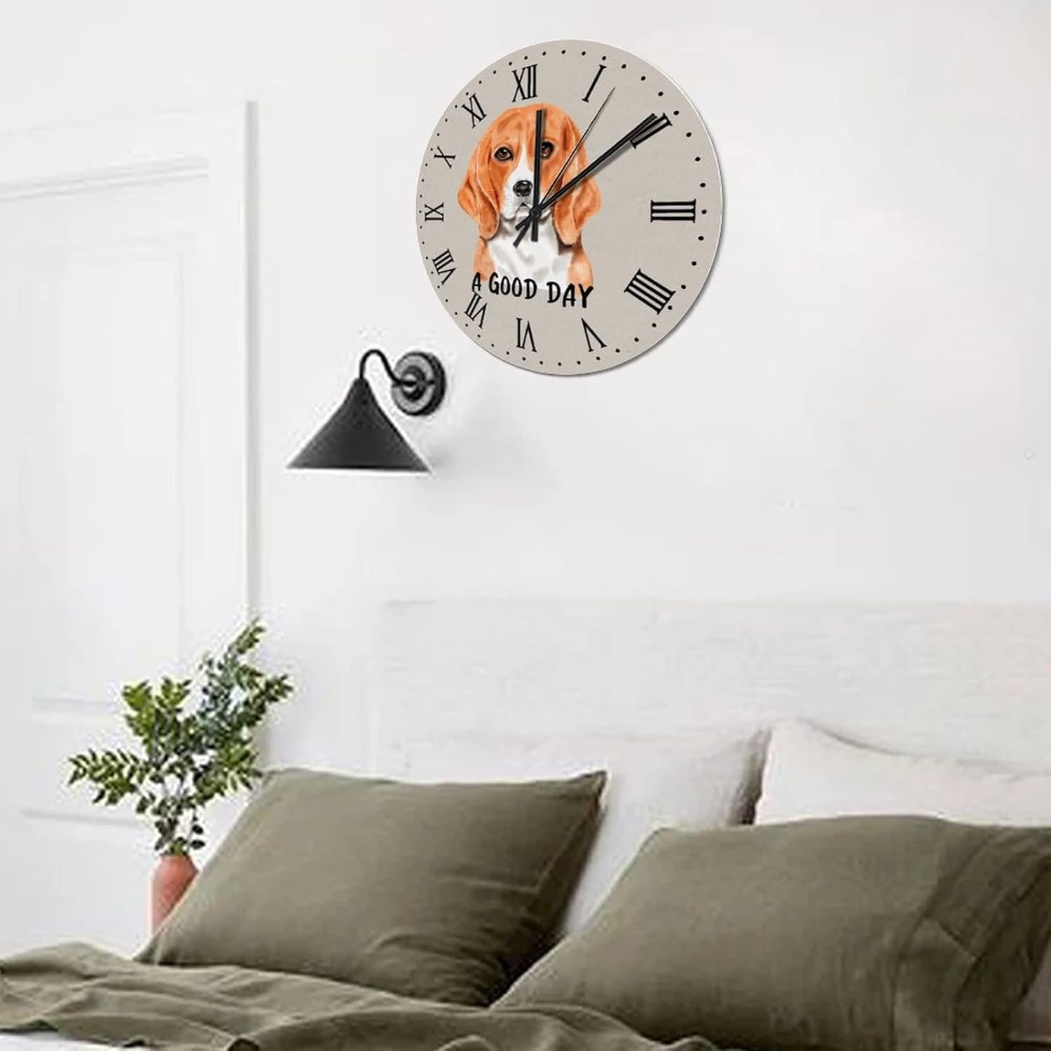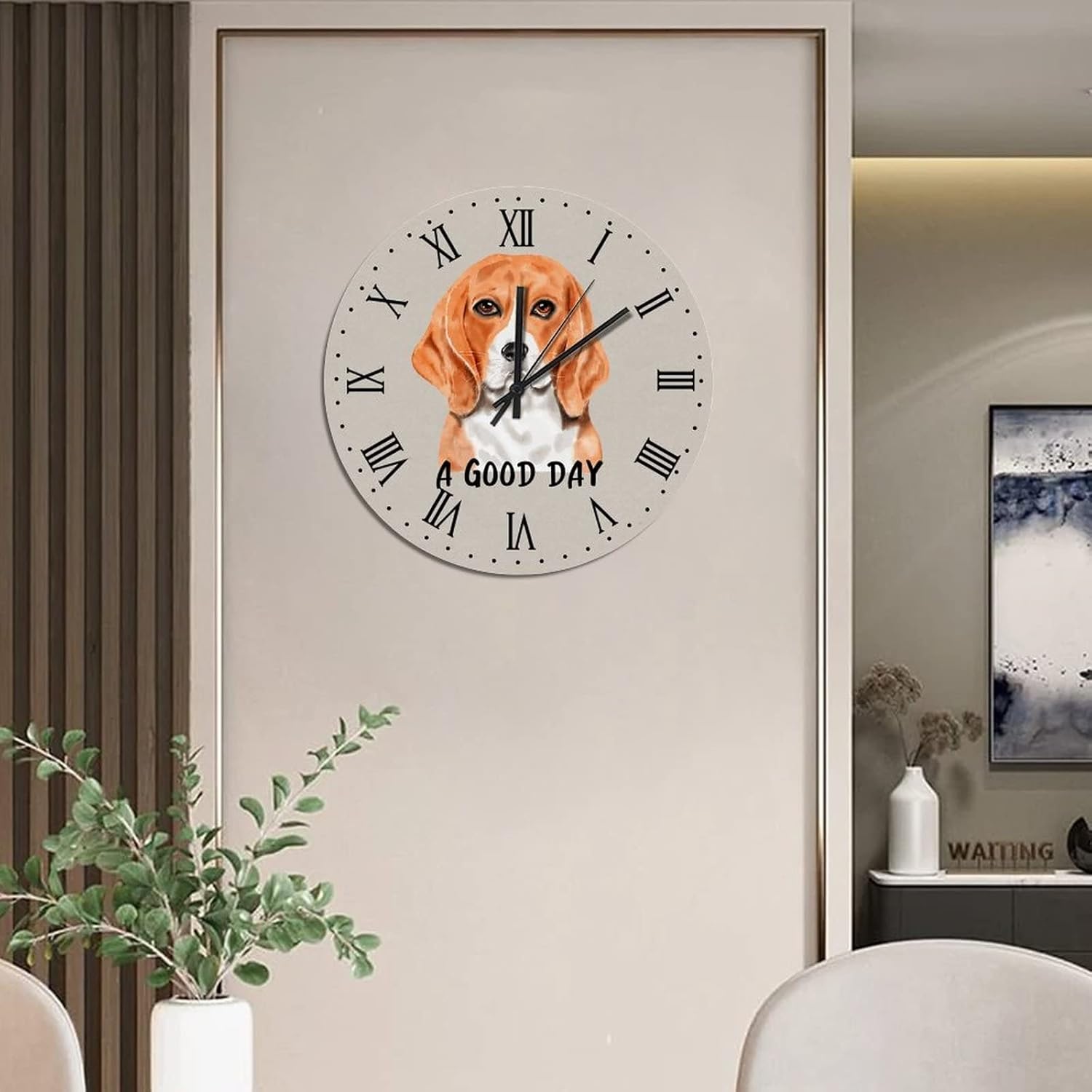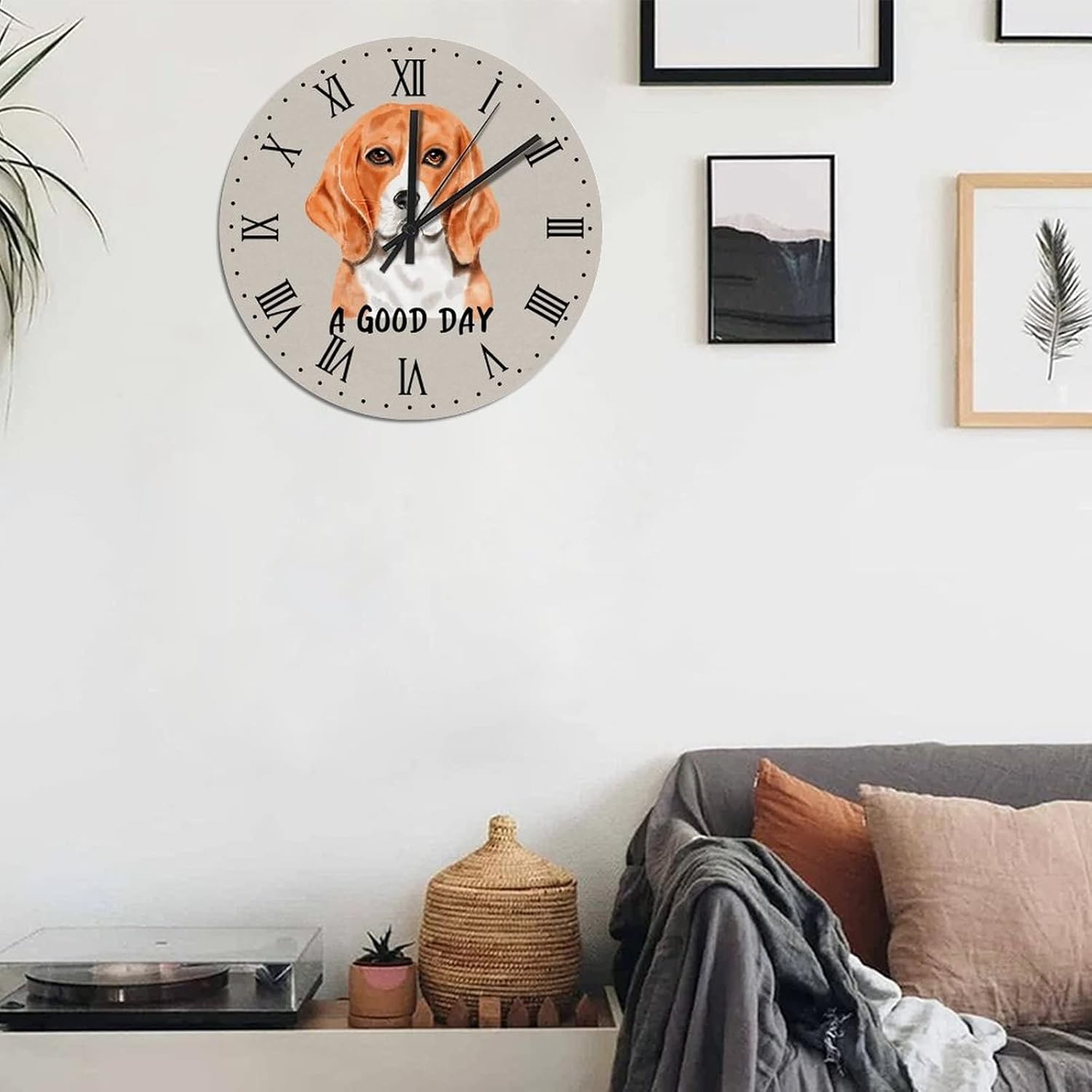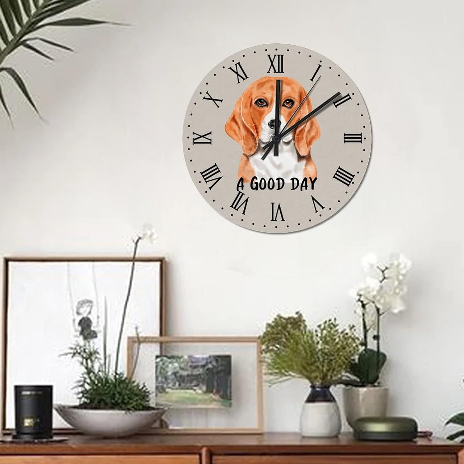 BESTORLOVE Dog Sticking Out Tongue Wooden Clocks A Good Day Dog Wood Wall Clock Silent Non-Ticking 15″ x 15″ Round Wall Clock for Living Room Bedroom Kitchen Home Decorations Ship from US