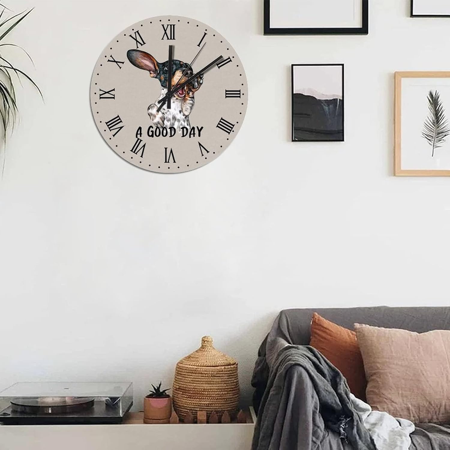 BESTORLOVE Dog Wooden Clocks A Good Day Dog Wood Wall Clock Silent Non-Ticking 15″ x 15″ Round Wall Clock Decor for Home Living Room Bedroom Office Ship from US