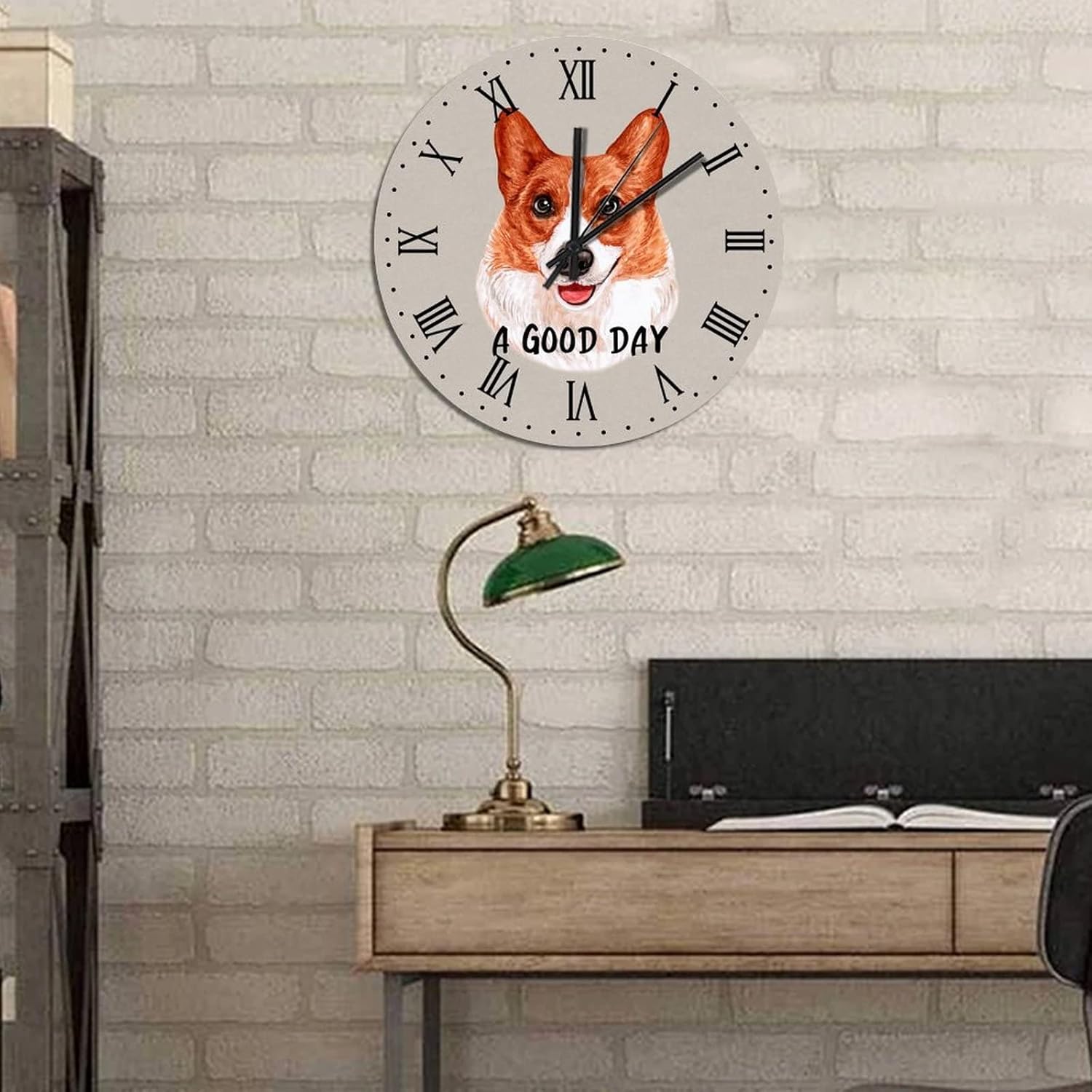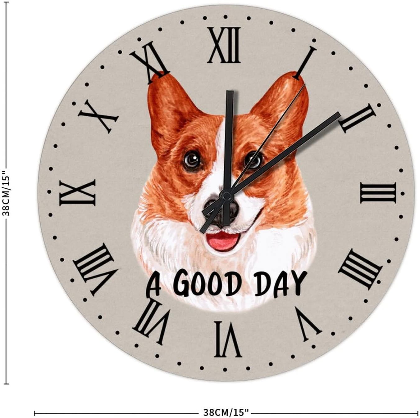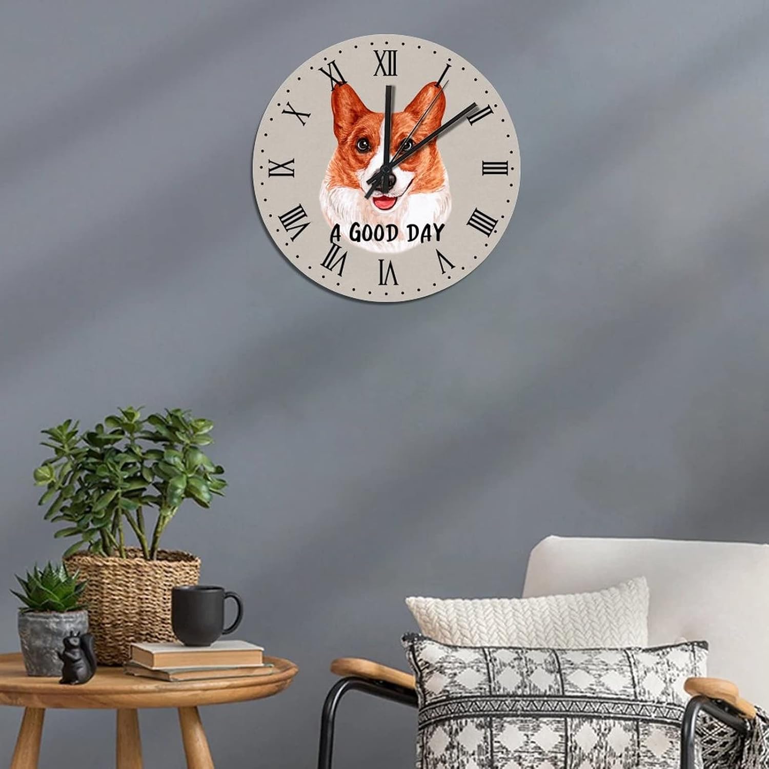 BESTORLOVE Funny Silent Non-Ticking Wood Wall Clock A Good Day Dog Wooden Clocks 15″ x 15″ Round Wall Clock Home Decor Art for Living Room Kitchen Bedroom Ship from US