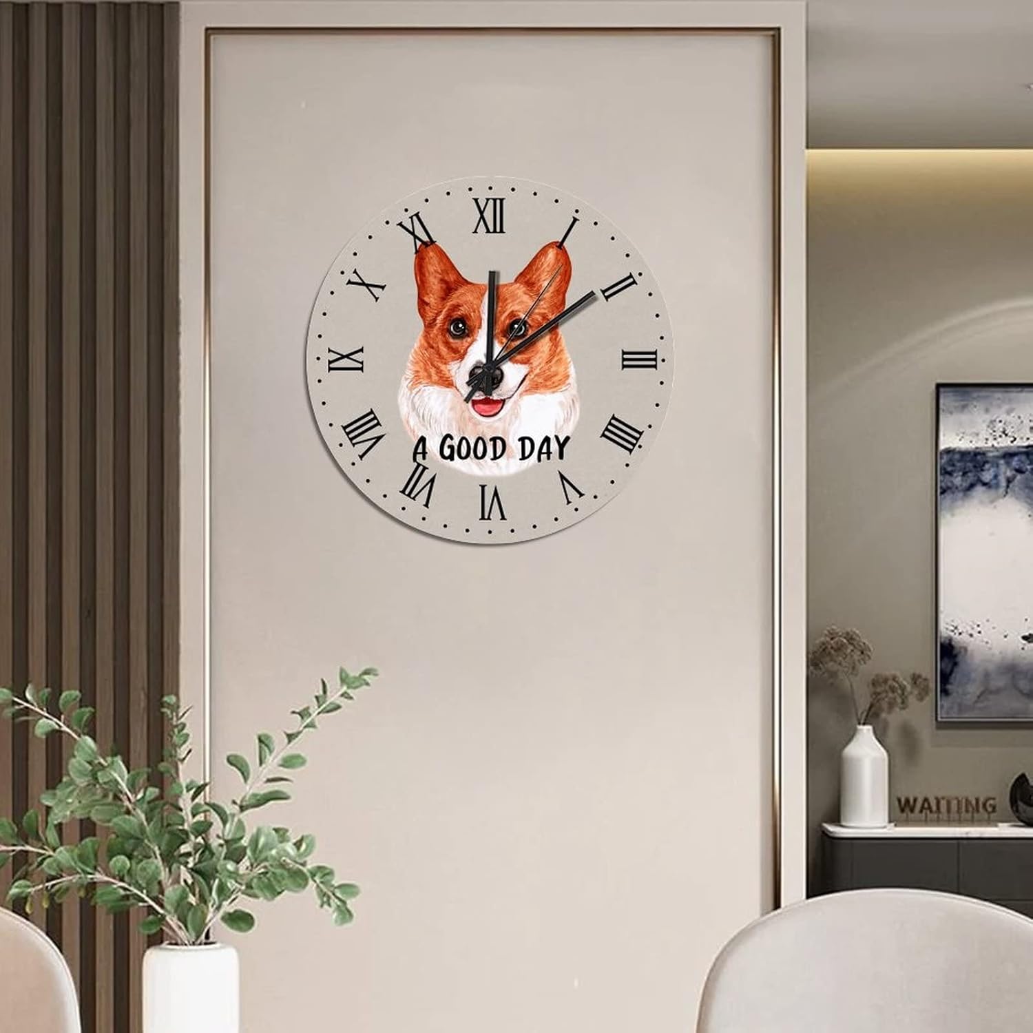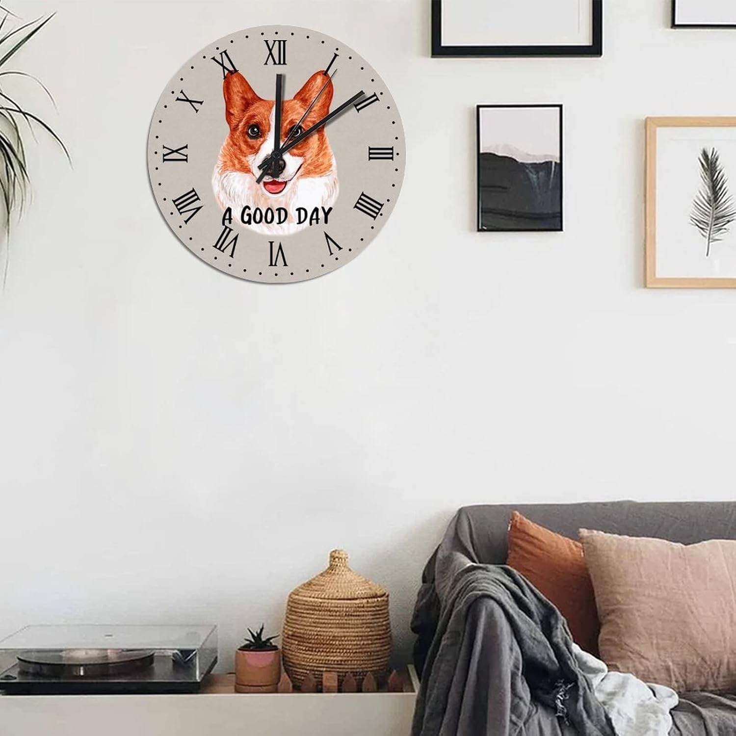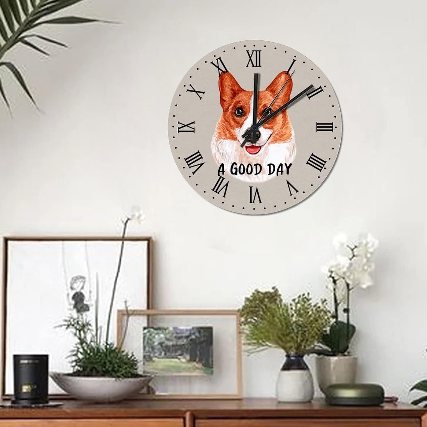 BESTORLOVE Funny Silent Non-Ticking Wood Wall Clock A Good Day Dog Wooden Clocks 15″ x 15″ Round Wall Clock Home Decor Art for Living Room Kitchen Bedroom Ship from US