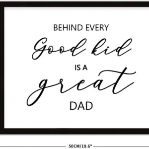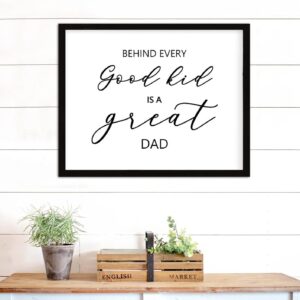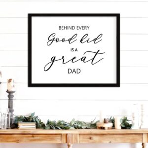 COCOKEN Behind Every Good Kid is A Great Dad Sign Wood Framed, Modern Inspirational Quotes Wooden Plaque with Frame, 16″ X 20″ Congratulations Printed Wall Art for Home Bedroom Living Room Farmhouse