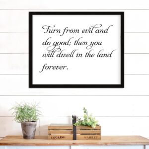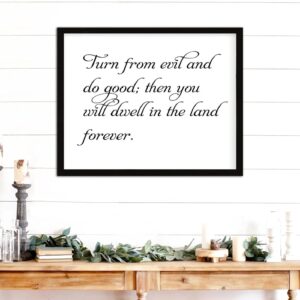 COCOKEN Turn from Evil and Do Good Then You Will Dwell in The Land Forever Wooden Plaque with Frame, Saying Sign Wood Framed, 16″ x 20″ Elegant Printed Hanging Wall Art for Home Bedroom Farmhouse