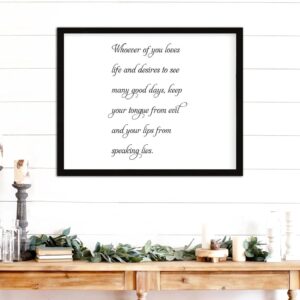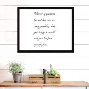 COCOKEN Whoever of You Loves Life and Desires to See Many Good Days Wooden Plaque with Frame, Saying Sign Wood Framed, 16″ x 20″ Elegant Printed Hanging Wall Art for Home Bedroom Kitchen Farmhouse