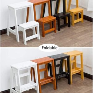 DASHADAO Indoor Climbing Stool, Household Goods 2 Steps Folding Step Ladder Wooden Ladder, Home Interior Stair Step Stool, Wooden Kitchen Step Chair Maximum Load 150Kg\/White (White)
