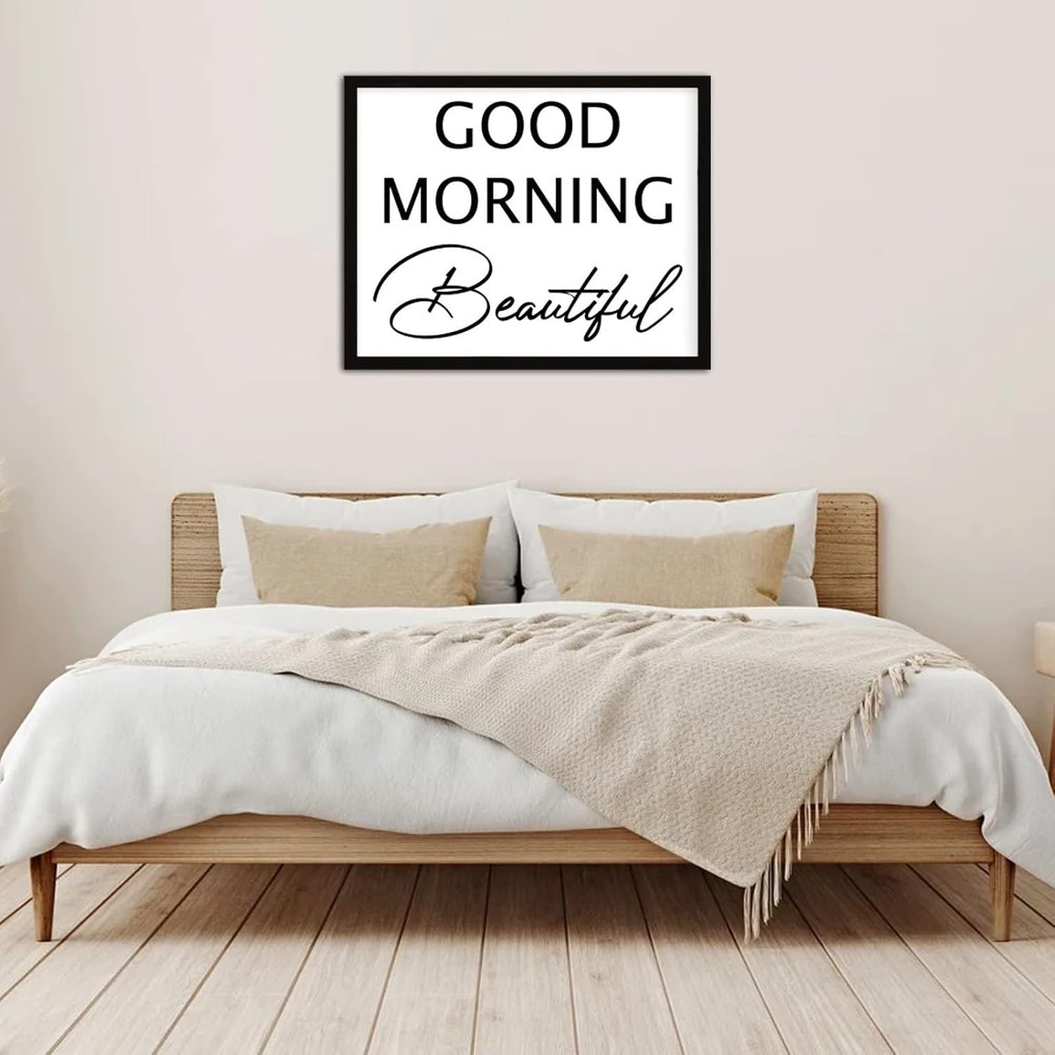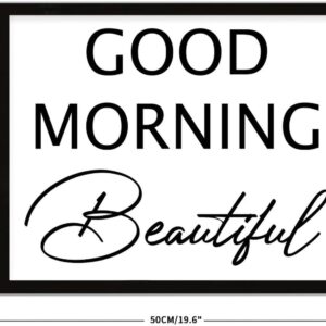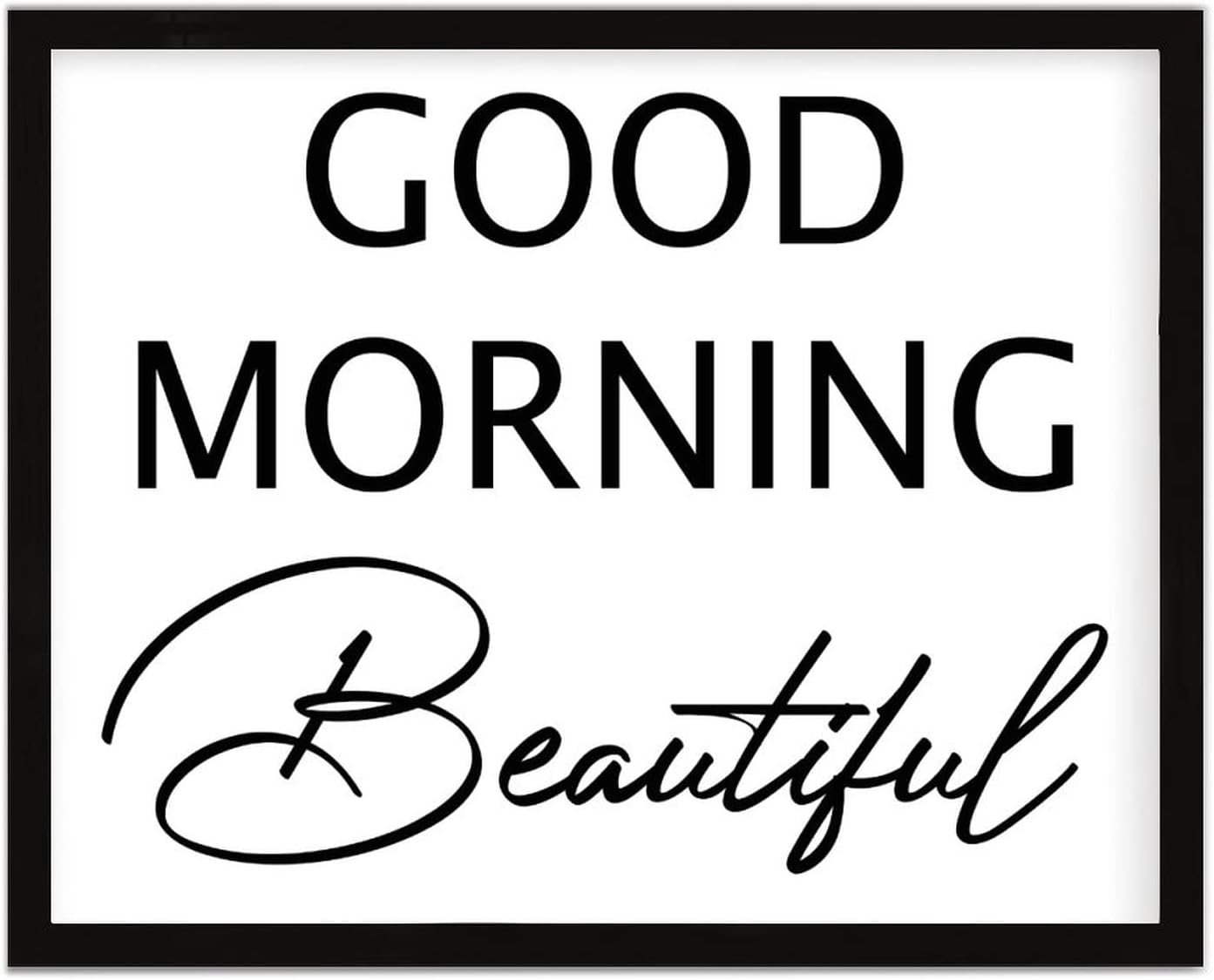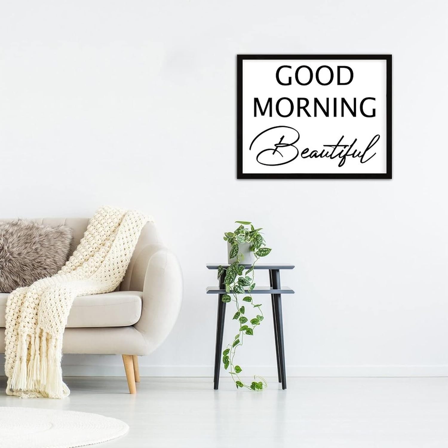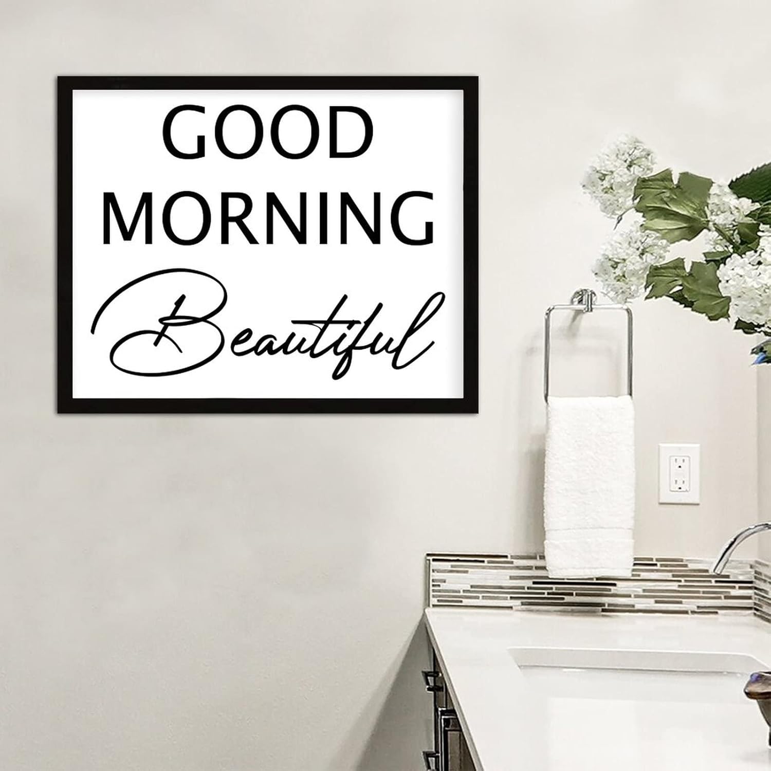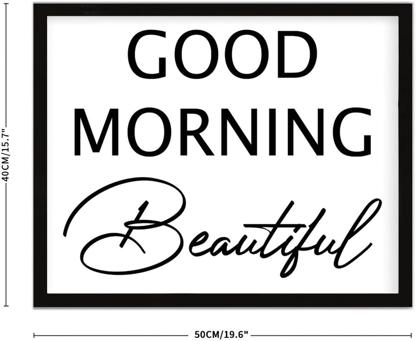 Farmhouse Framed Wall Art Motto Decor Wood Sign Good Morning Beautiful Positive Wall Art Wood Plaque Sign 16×20 Inch Wooden Hanging Signs Home Decor for Laundry Front Door