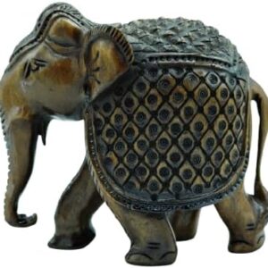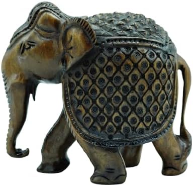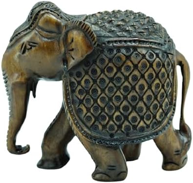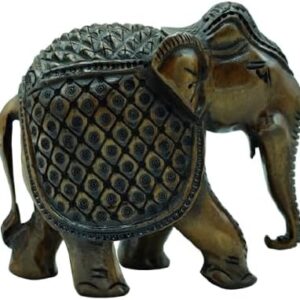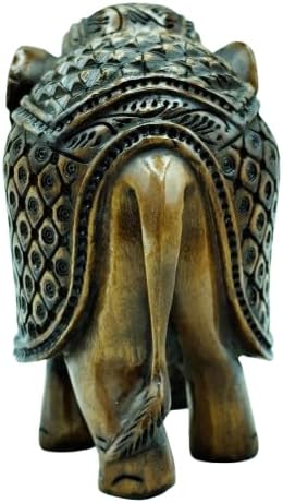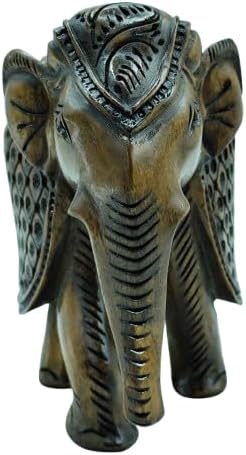 Handcrafted Wooden Carving Elephant Statue – 5″ Good Luck African Boho Handmade Elephant Figurine Decor for Home, Office & Living Room, Natural Wood Finish, Elegant Shelf Decoration