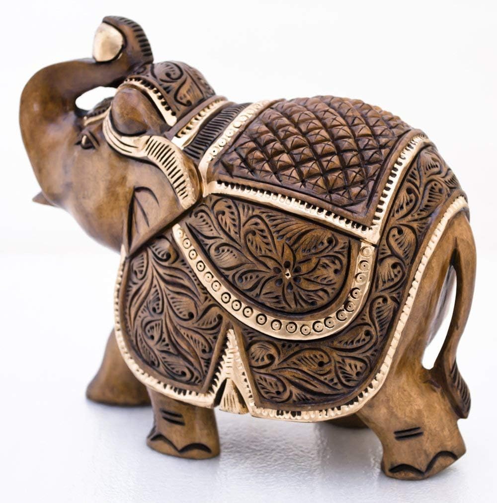- Wooden Elephant Idol Feng Shui Good Luck Statue handmade 3 Inches home Decor