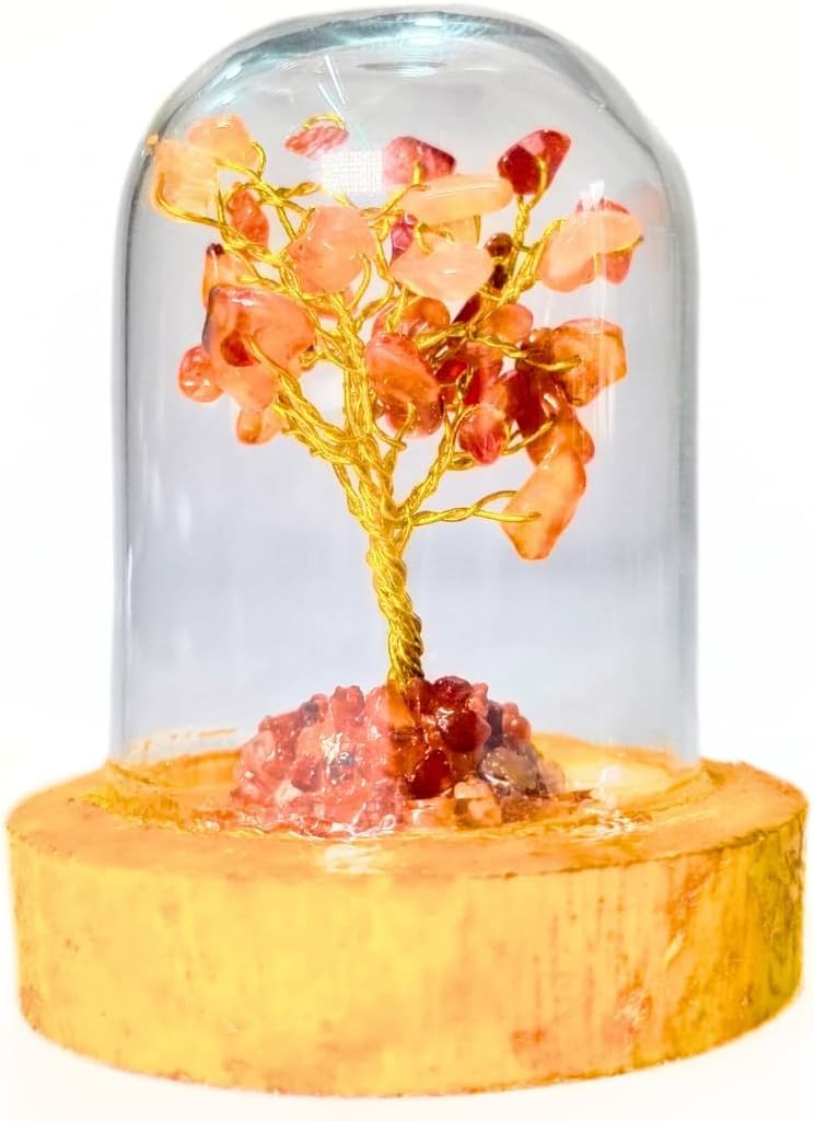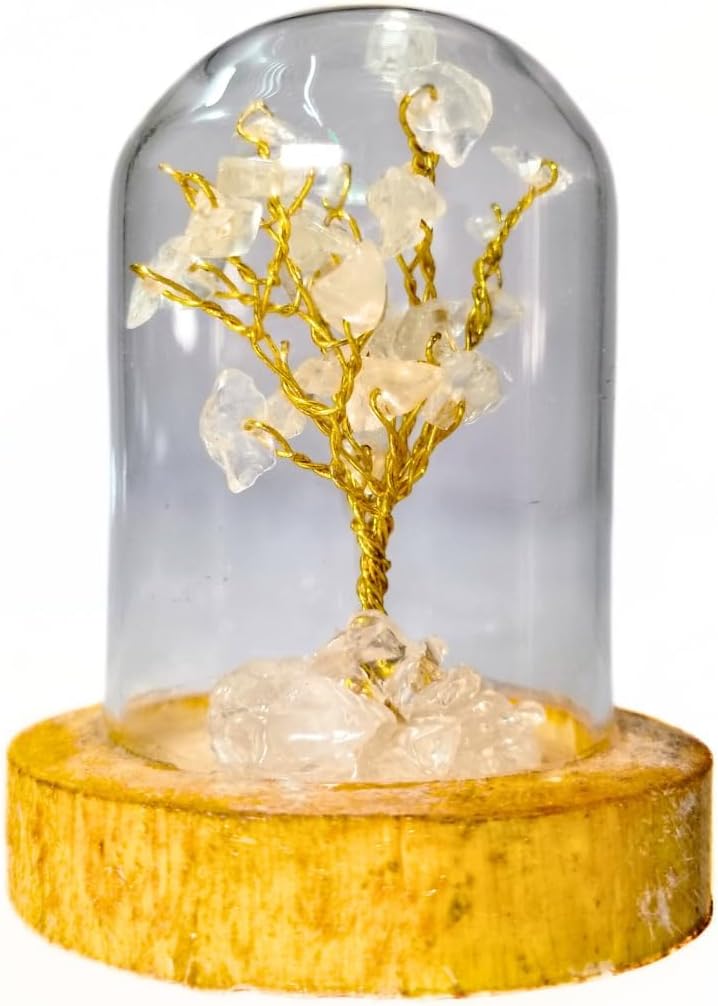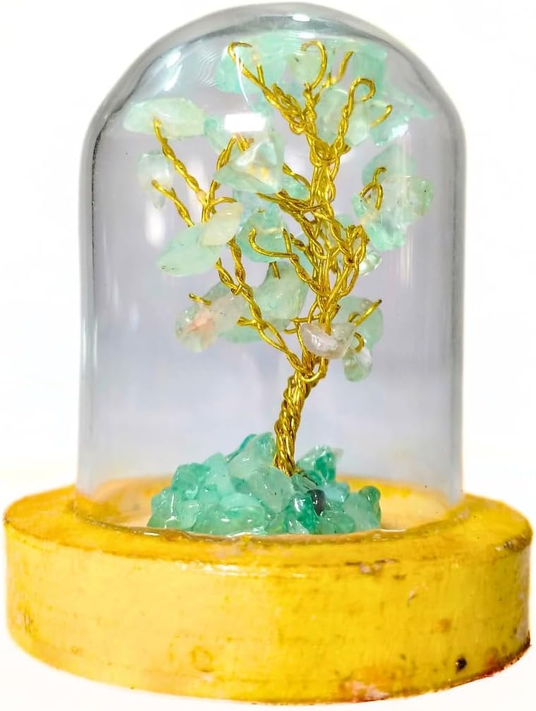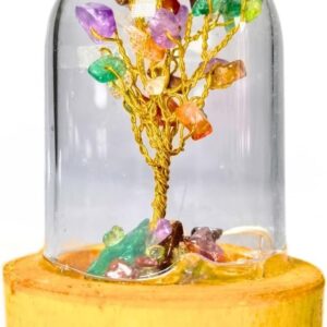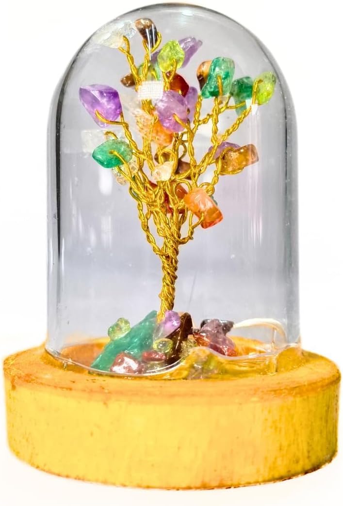 Natural Crystals Stone Tree with Glass & Wooden Base Size: 7×5 cm Weight: 50 grams Type: 7 Chakra Artificial Tree Product Description: Bring balance and positive energy into your space with our Natural Crystals Stone Tree with Glass & Wooden Base Standing at 7×5 cm and weighing 50 grams these exquisite chakra trees are adorned with an assortment of natural gemstones. Each tree is carefully crafted to promote energy flow and good luck, making it a perfect addition to your home, office, or meditation space. Choose your favorite color and stones to personalize your tree. Key Features: 7 Chakra Stones: Each tree features a selection of chakra stones, including amethyst, green aventurine, carnelian, black tourmaline, aquamarine, rose quartz, jasper, clear quartz, and tiger eye. These stones are known for their powerful energy and healing properties. Beautiful Craftsmanship: The tree is meticulously handcrafted with natural crystals, mounted on a glass and wooden base, creating a stunning and durable piece of art. Energy & Good Luck: Designed to enhance the flow of energy and bring good luck, these chakra trees are perfect for meditation, spiritual practices, or as a beautiful decorative piece. Personalization: Choose from a variety of colors and stones to match your personal style and energy needs. Whether you prefer the calming energy of amethyst or the protective power of black tourmaline, there’s a tree for everyone. Benefits of Chakra Trees: Promotes Balance:The combination of chakra stones helps to balance and align the energy centers in your body, promoting overall well-being. Enhances Positive Energy: These trees are believed to attract positive energy, remove negative vibes, and create a harmonious environment. Aesthetic Appeal: Beyond their spiritual benefits, these trees add a touch of natural beauty to any space. The vibrant colors and intricate design make them a visually appealing addition to your decor. Why Choose Our Natural Crystals Stone Tree? High Quality: Each tree is made with carefully selected stones and crafted with attention to detail, ensuring a high-quality product. Versatile Use:Perfect for use in homes, offices, meditation spaces, or as a thoughtful gift for someone special. Great Value: Combining beauty, craftsmanship, and the powerful energy of natural stones, these trees offer excellent value for their price. Customer Satisfaction: We are committed to providing high-quality products and exceptional customer service. Your satisfaction is our top priority. Enhance your space and energy with our Natural Crystals Stone Tree with Glass & Wooden Base 🌟. Order now and pick a color and stones that resonate with you to create a personalized and powerful energy piece. Note: – Due to the natural variations in each stone, the size, shape, and color may slightly vary from the images shown. – All trees are carefully packaged to ensure safe delivery.