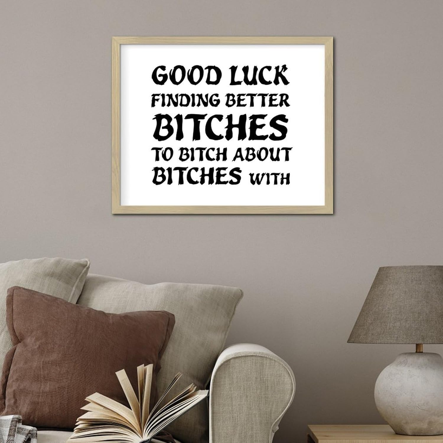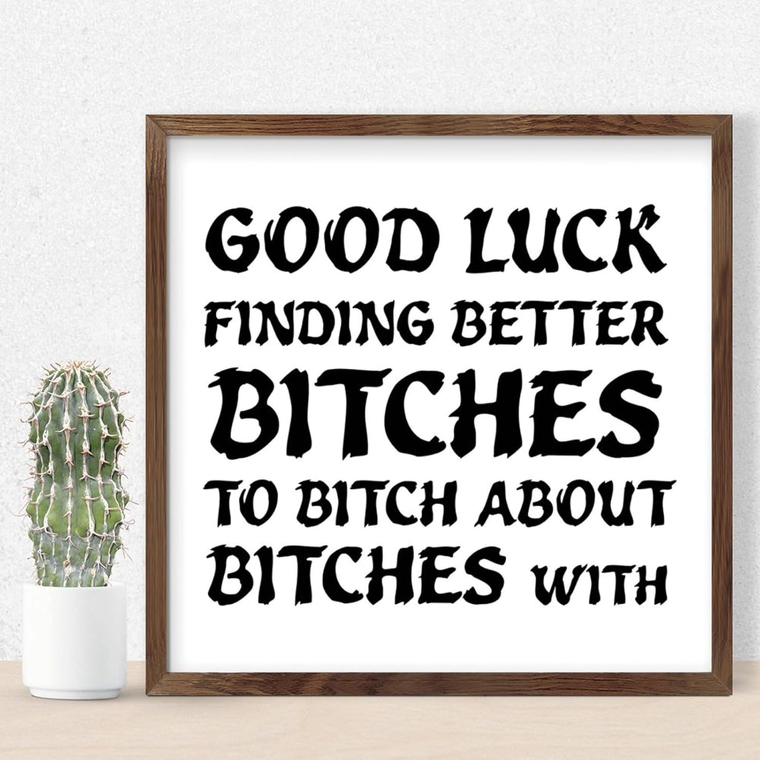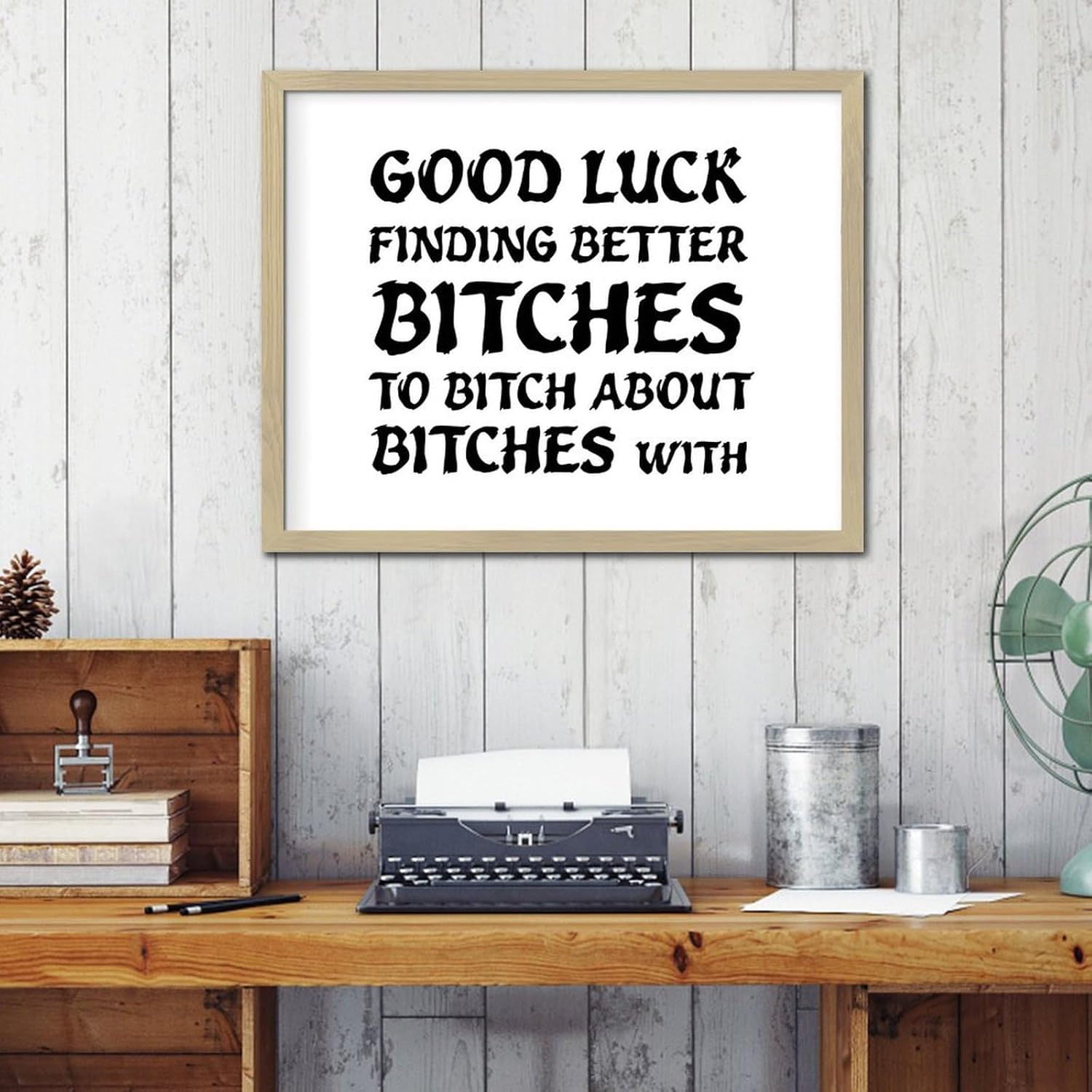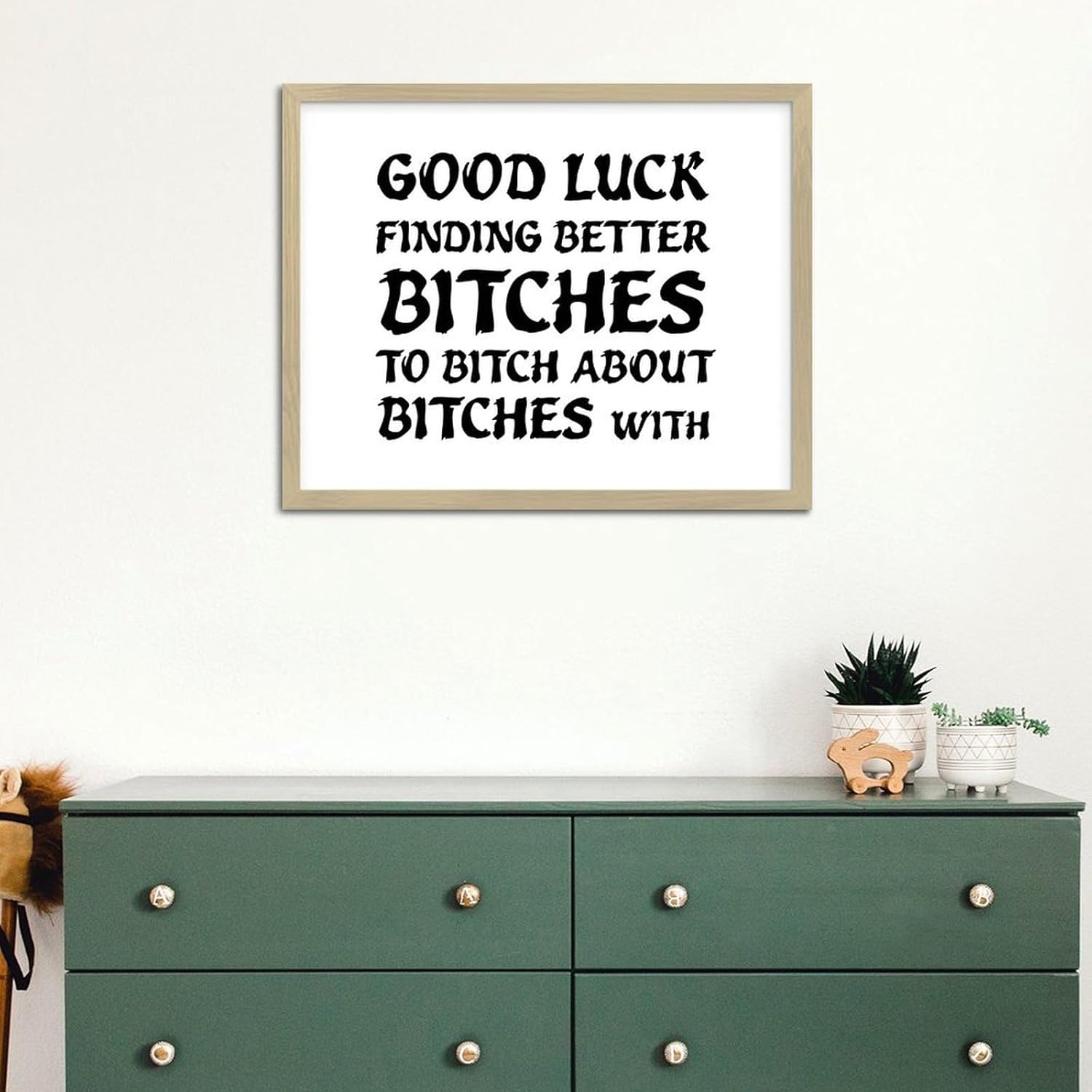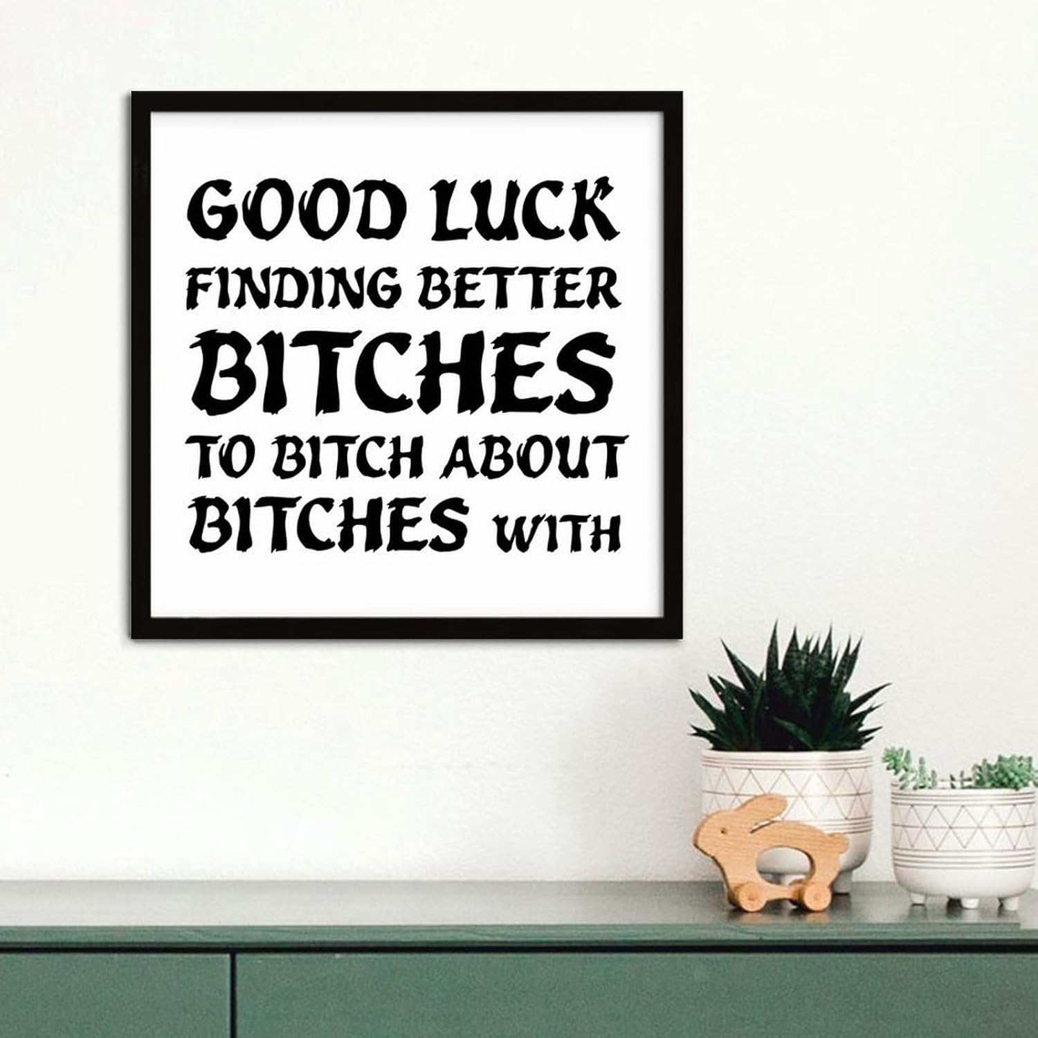 Personalized Home Décor Framed Wood Sign Plaque Good Luck Finding Better Bitches Antique Wall Art Wood Plaque Sign 16x20in Wooden Hanging Signs for Offices Porch
