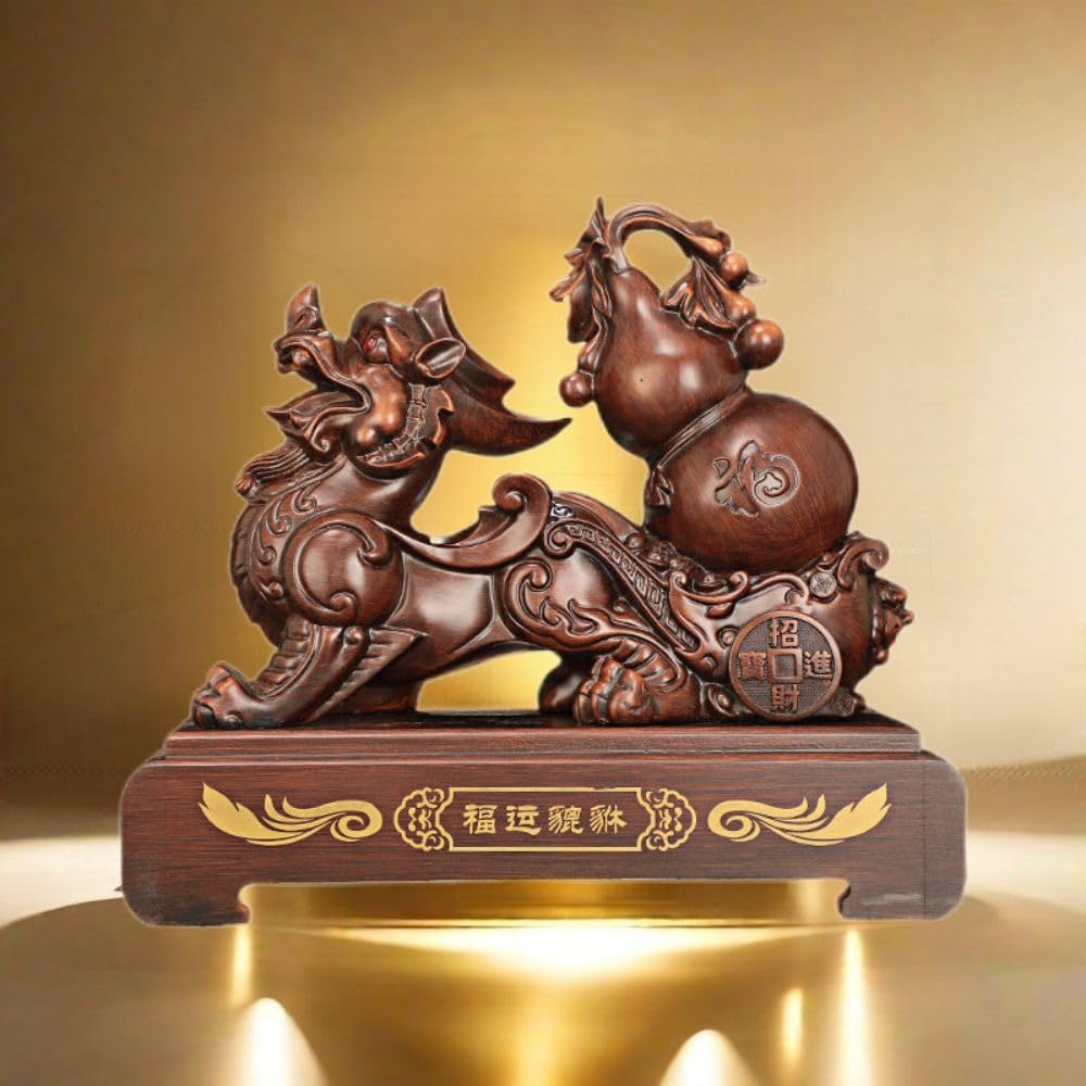 - 小号福运 pi yao sculpture Golden Home Decoration Figurine 貔貅(木纹色) – Delivery style, accept note size color style