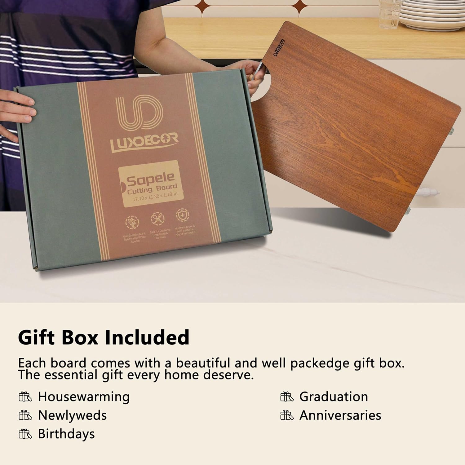 Luxdecor wood cutting board is made from native sapele wood, cutted from a Whole log
