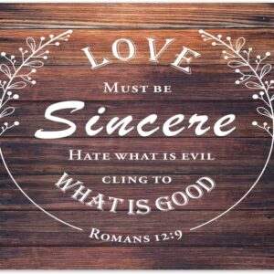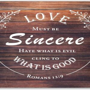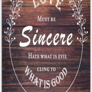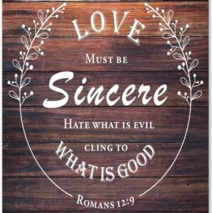 Rustic Home Decoration 24×24 Inch Wooden Plaques Love Must Be Sincere Cling to What Is Good Cute Wall Art Wood Plaque Sign with Quotes Home Sign for Restaurant Cottage