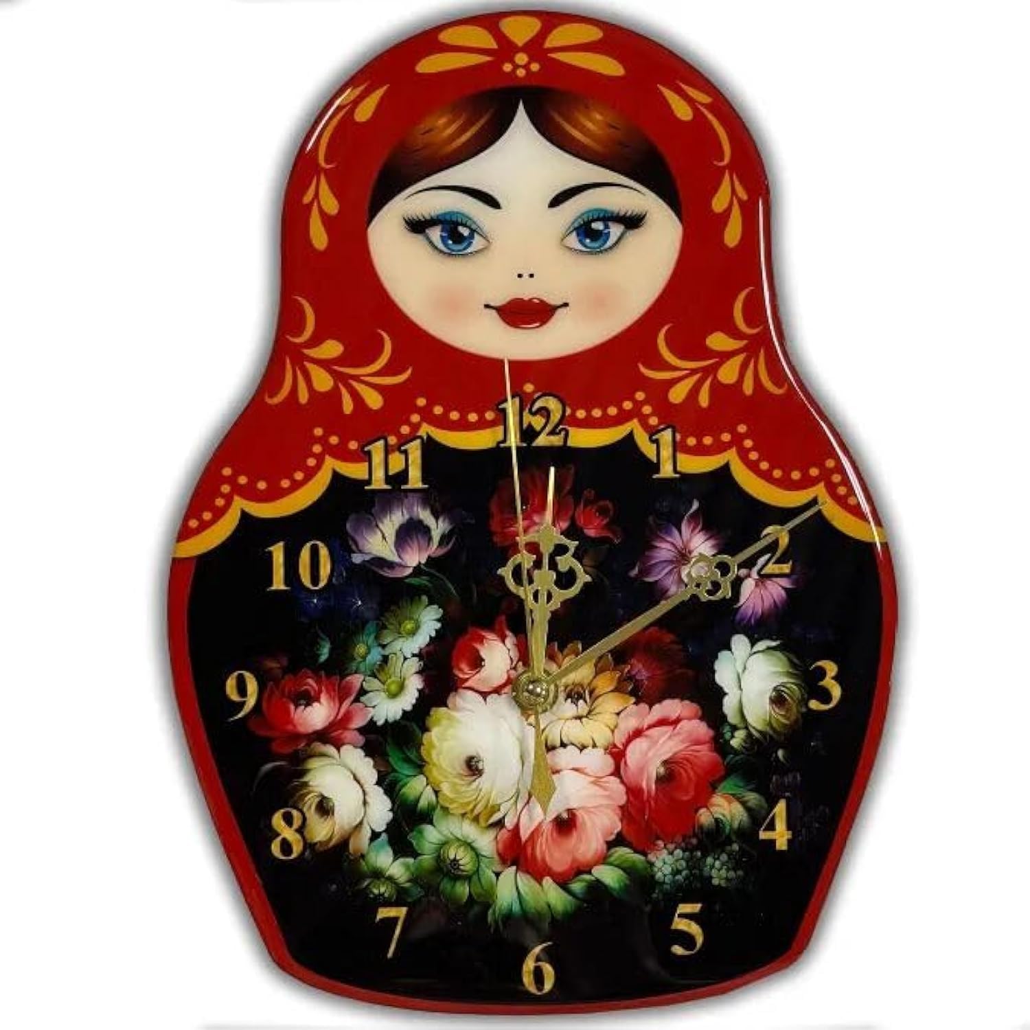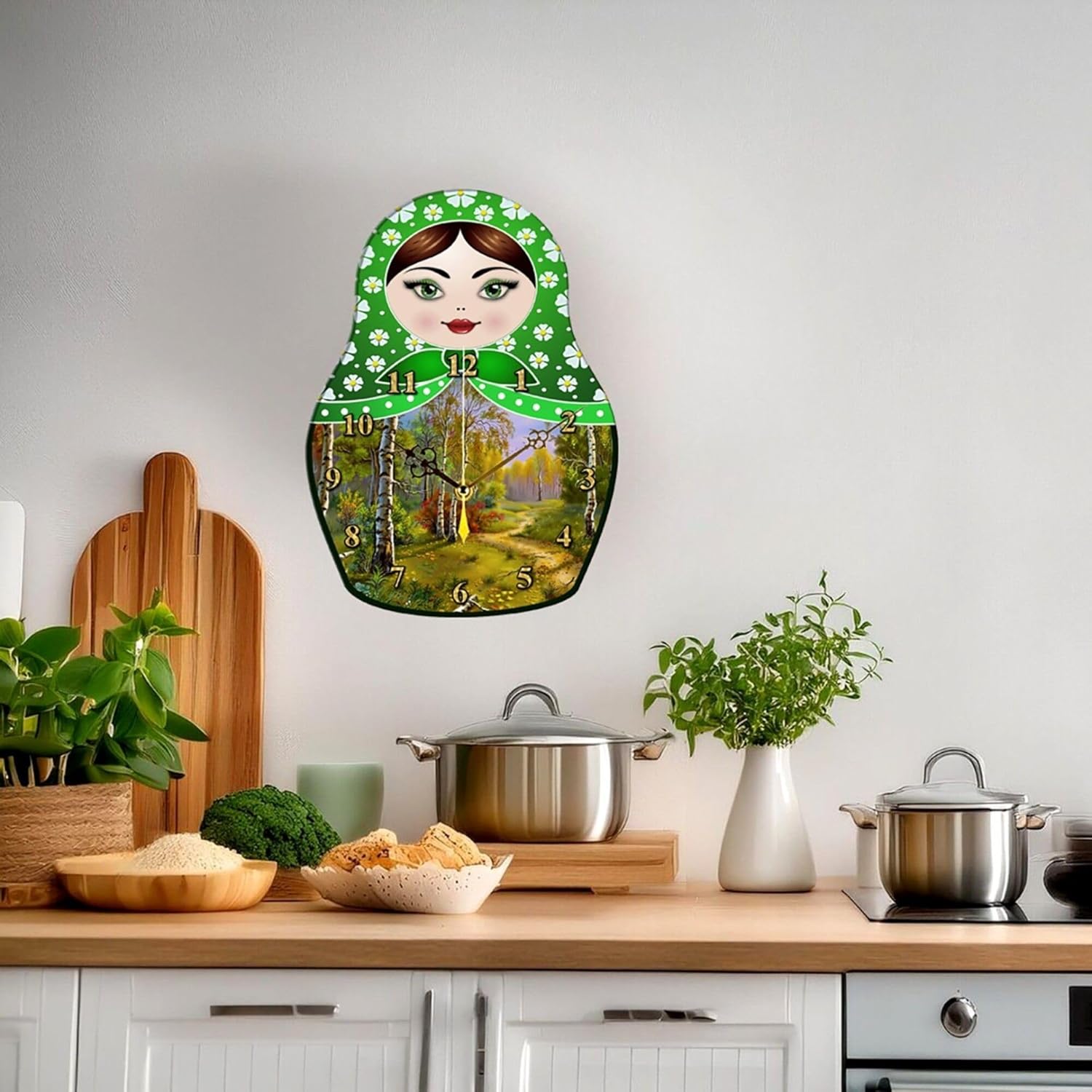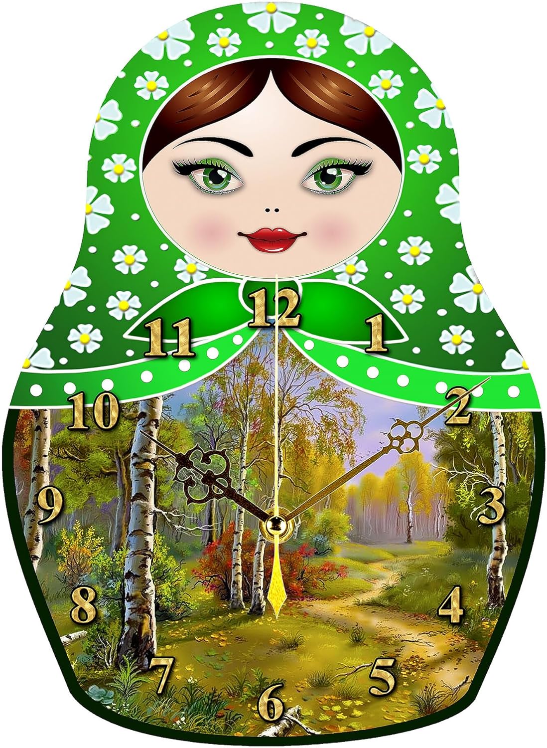 STP GOODS Matreshka Wooden Wall Clock, Weather Indication German Cuckoo Clock, Wall Decor, Home Decor, Humidity Indication, Rustic Design 10.6 x 14.5 (27 x 37 cm) (Green)