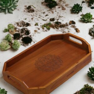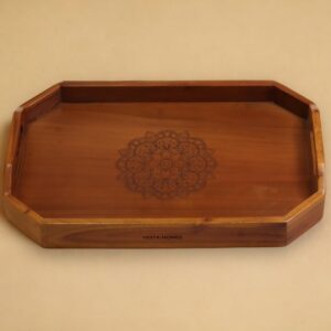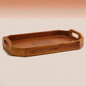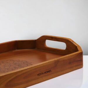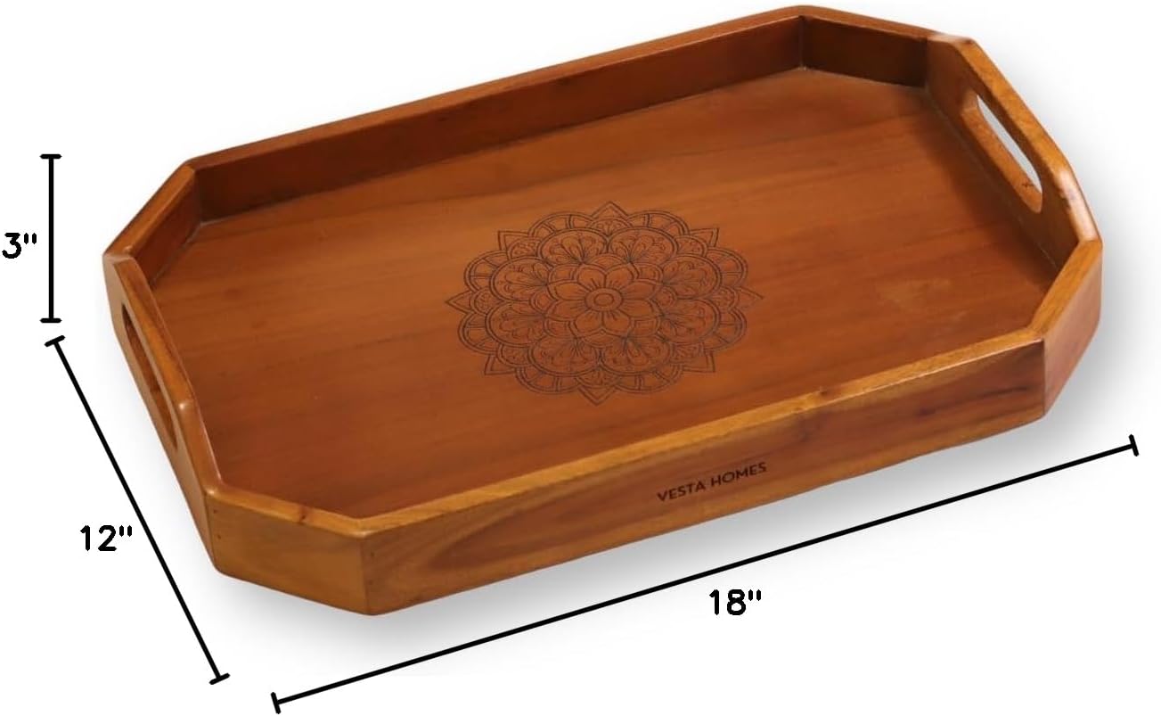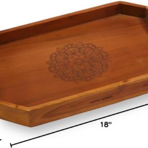 Vesta Homes Extra Large Wooden Serving Tray for Home, Kitchen, Breakfast, Restaurant, Office Organizer, Dining Table | Premium Acacia Wood |18 * 12 * 3 Inches | Handcrafted in India
