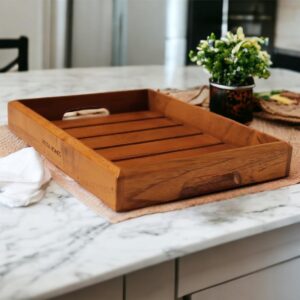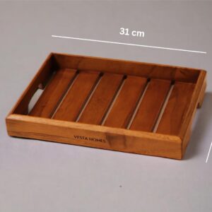 Vesta Homes Medium Teak Wood Serving Tray for Home, Kitchen, Breakfast, Restaurant, Office Organizer, Dining Table | Premium Wooden Tray |12 * 8.5 * 1.5 Inches | Handmade in India