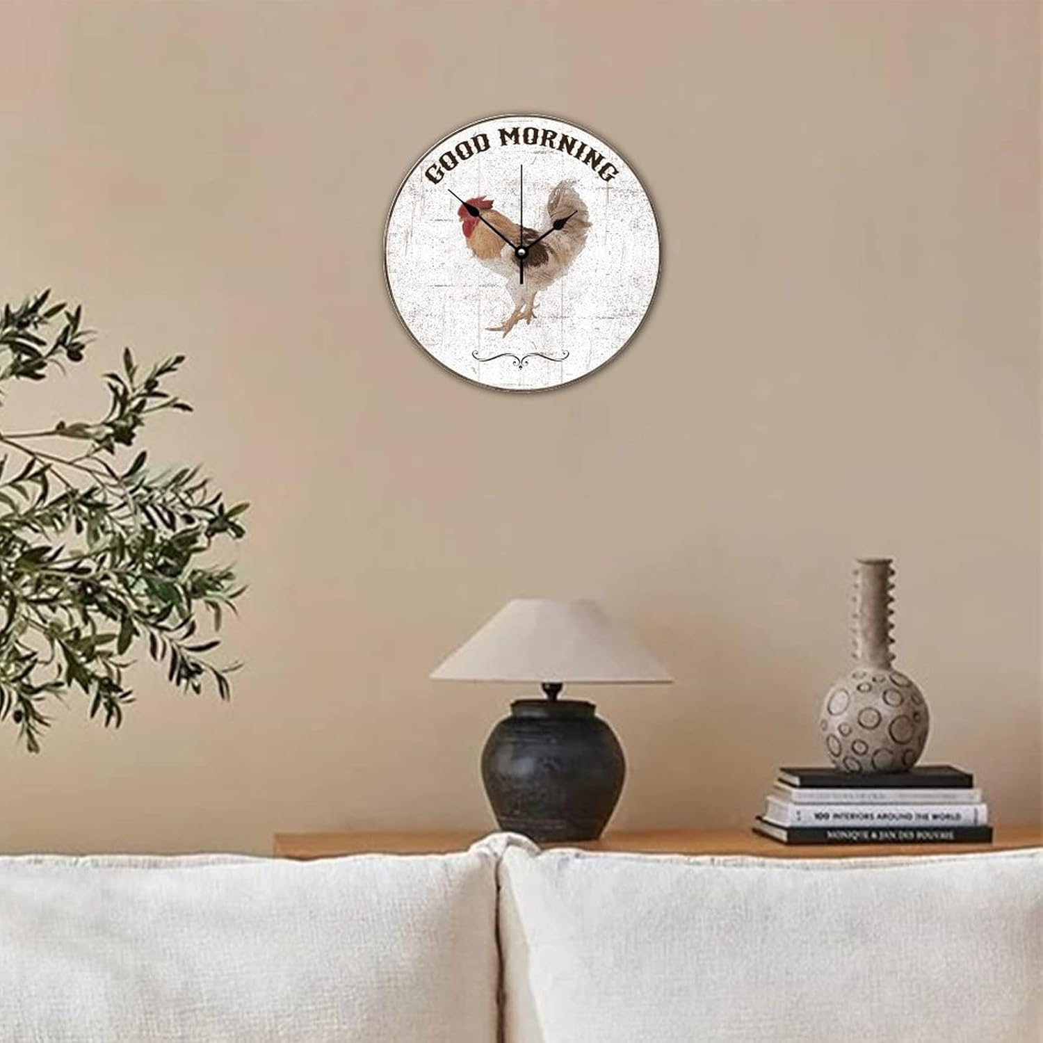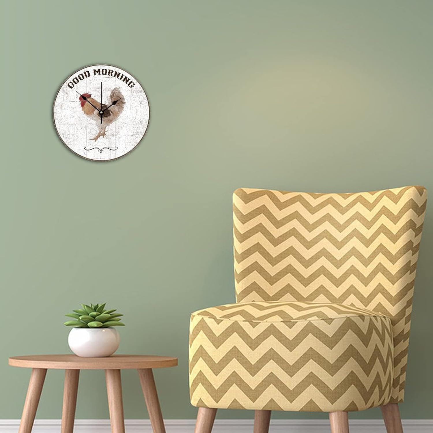 WengBeauty Rooster – Good Morning Wall Clocks Rural Crowing Cock Wooden Round Clock Retro New Home Owner Gift Silent & Non-Ticking Decorative for Home Bathroom Bedroom 15×15 inches