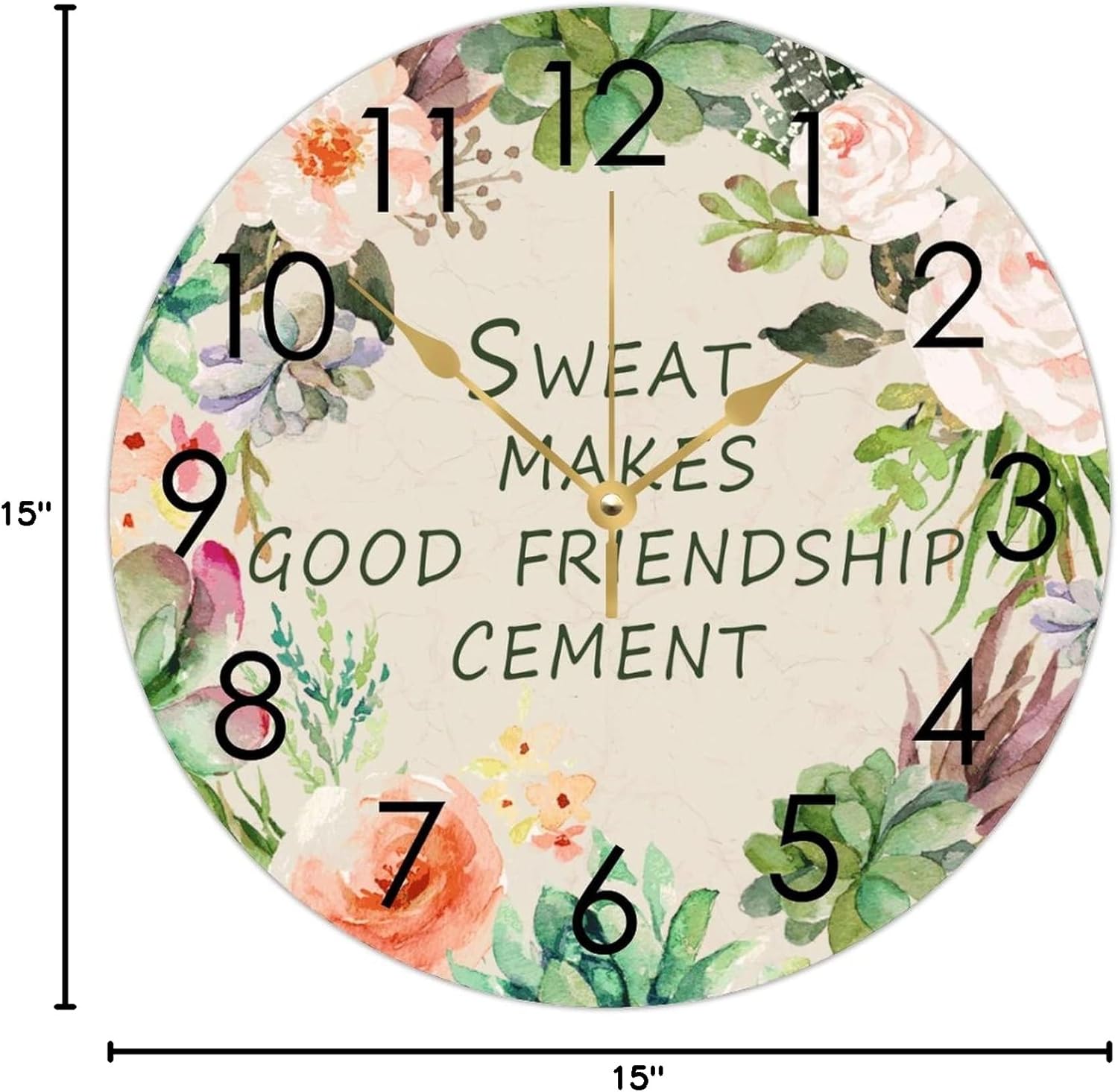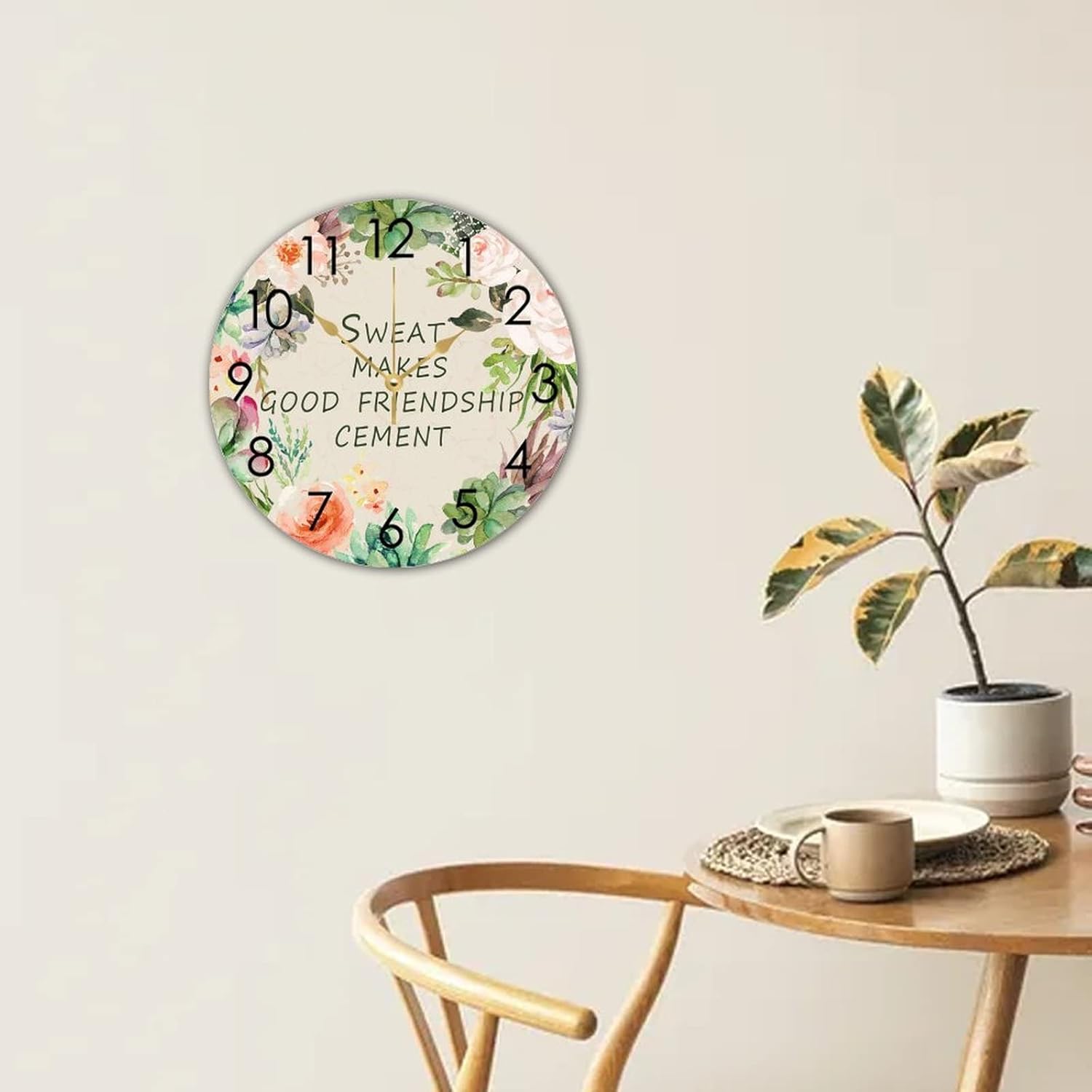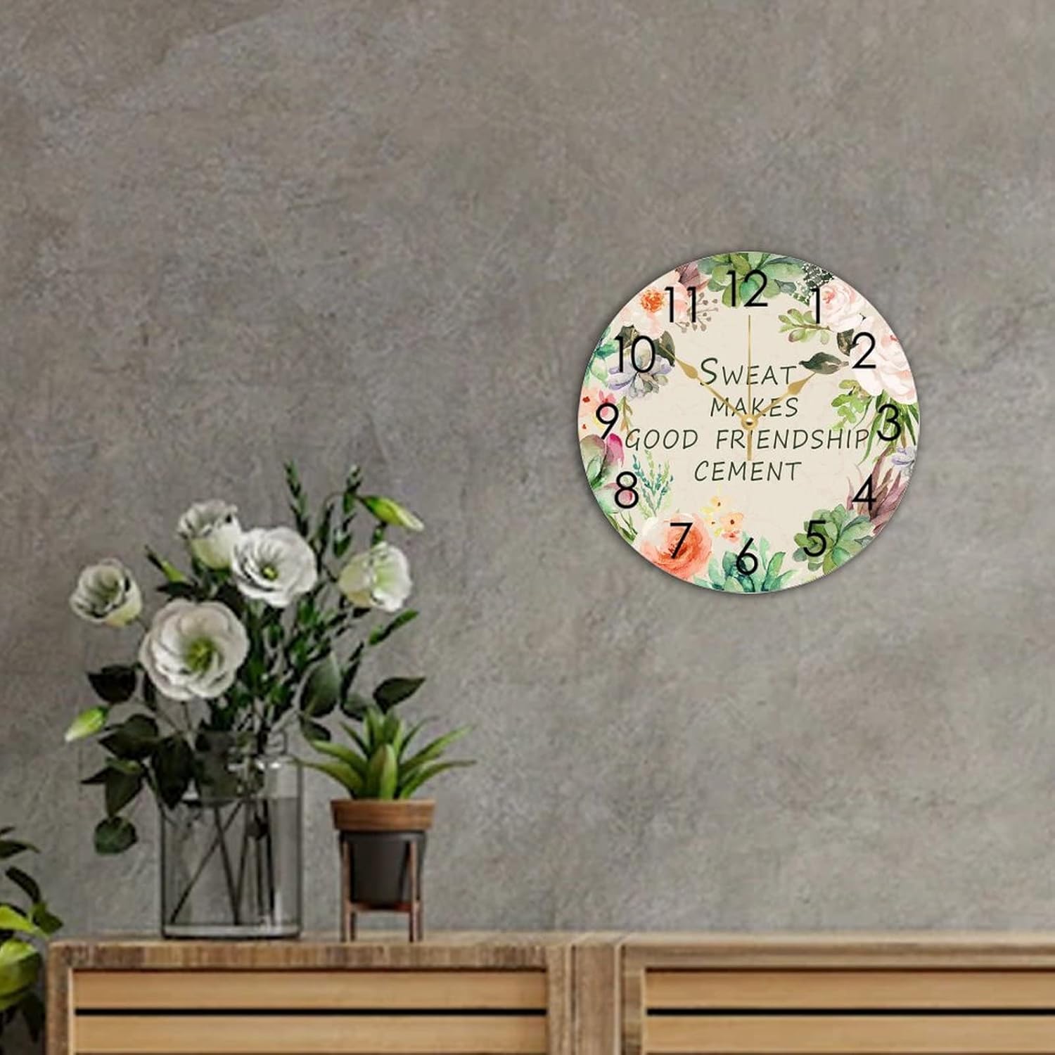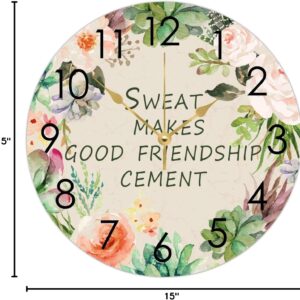 WengBeauty Wooden Round Nursery Clock Sweat Makes Good Friendship Cement Clocks Clock Silent & Non-Ticking Decorative for Home Bathroom Bedroom 15″x15″