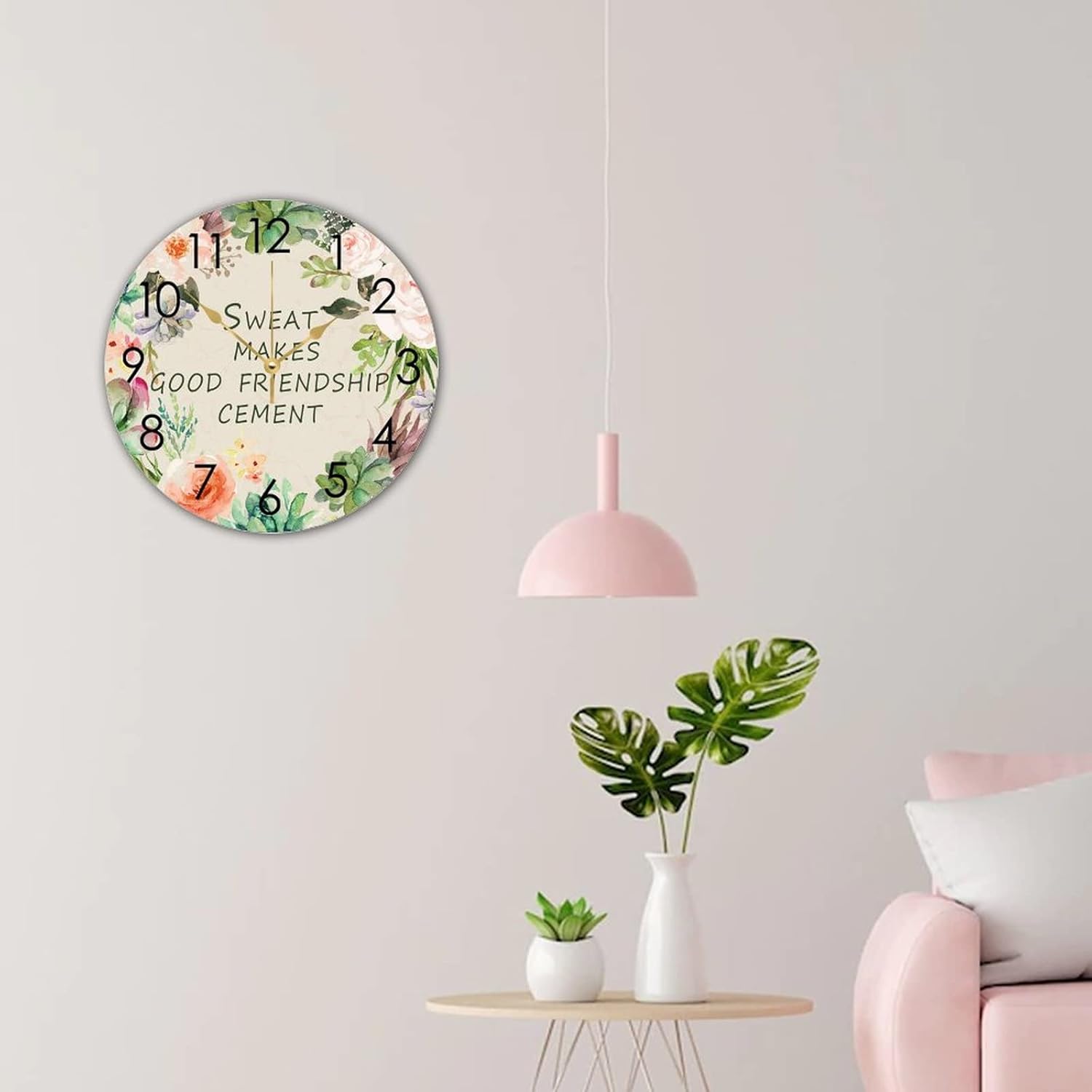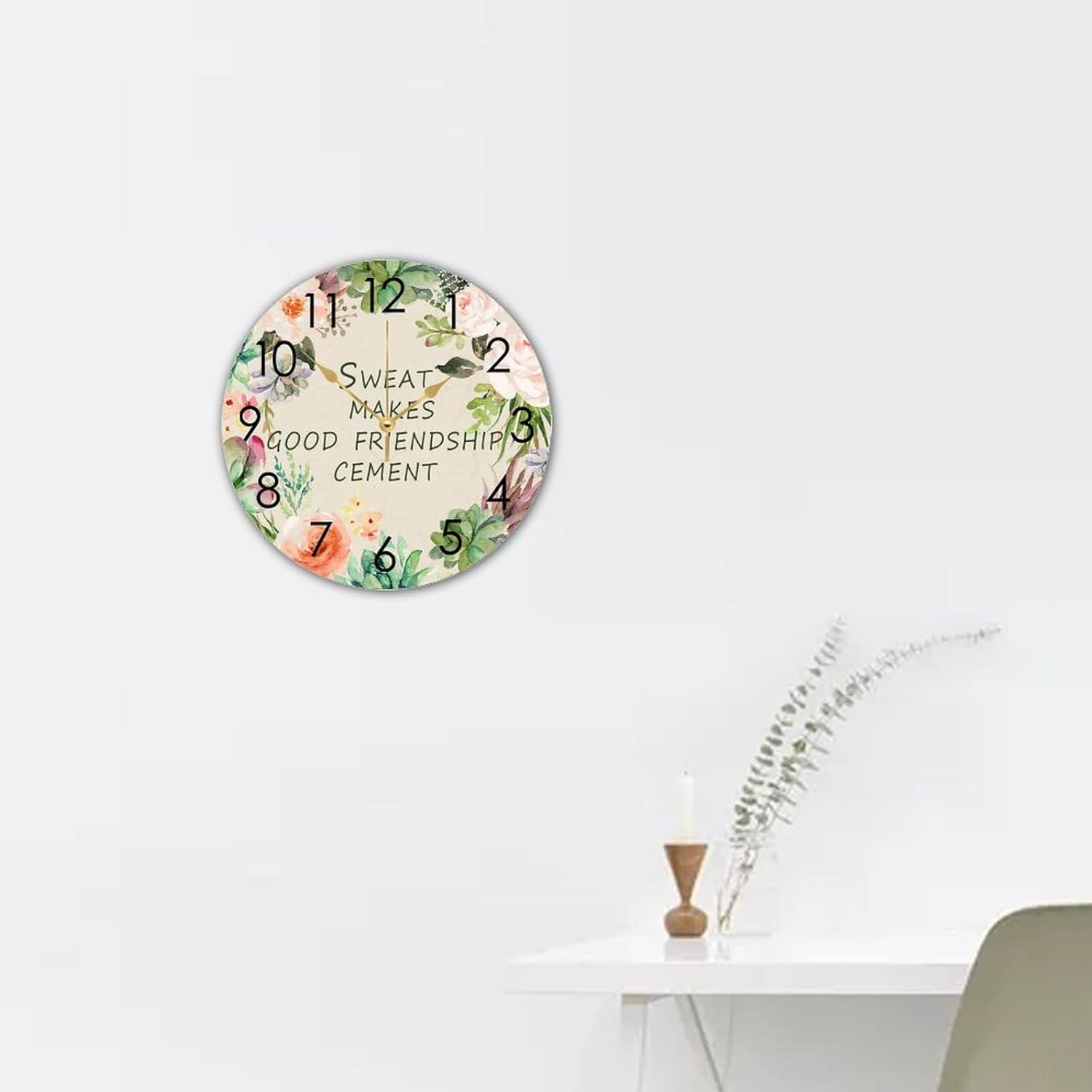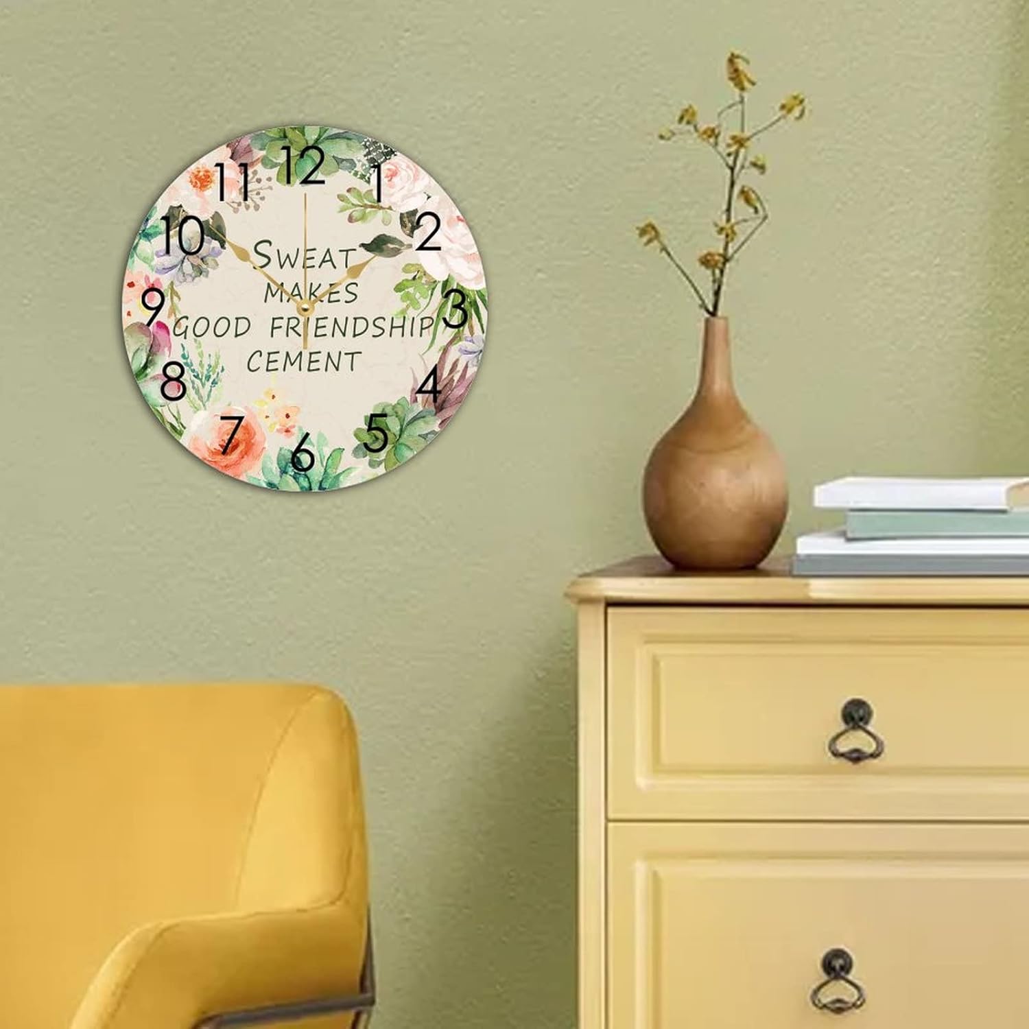WengBeauty Wooden Round Nursery Clock Sweat Makes Good Friendship Cement Clocks Clock Silent & Non-Ticking Decorative for Home Bathroom Bedroom 15″x15″