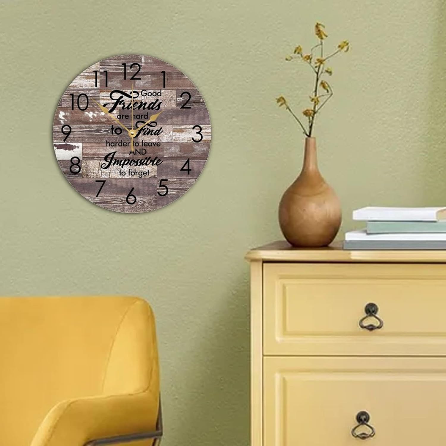 WengBeauty Wooden Round Wall Clock Good Friends are Hard to Find,harder to Leave Wall Clocks Bestie Gifts Clock Quartz Battery Operated for Home Dining Room Laundry Room Front Door 15″x15″