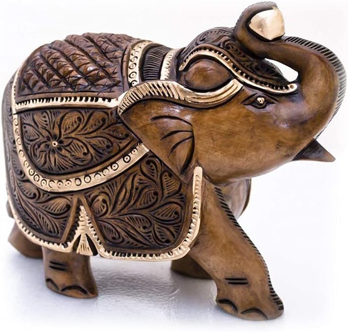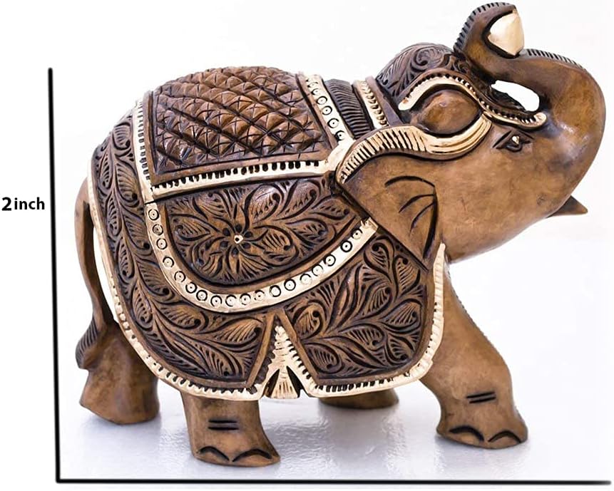- Wooden Elephant Idol Feng Shui Good Luck Statue handmade (2 inches)home Decor