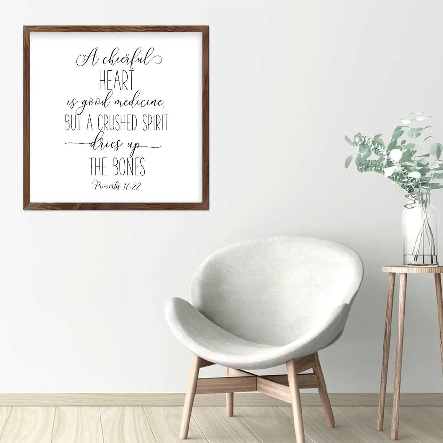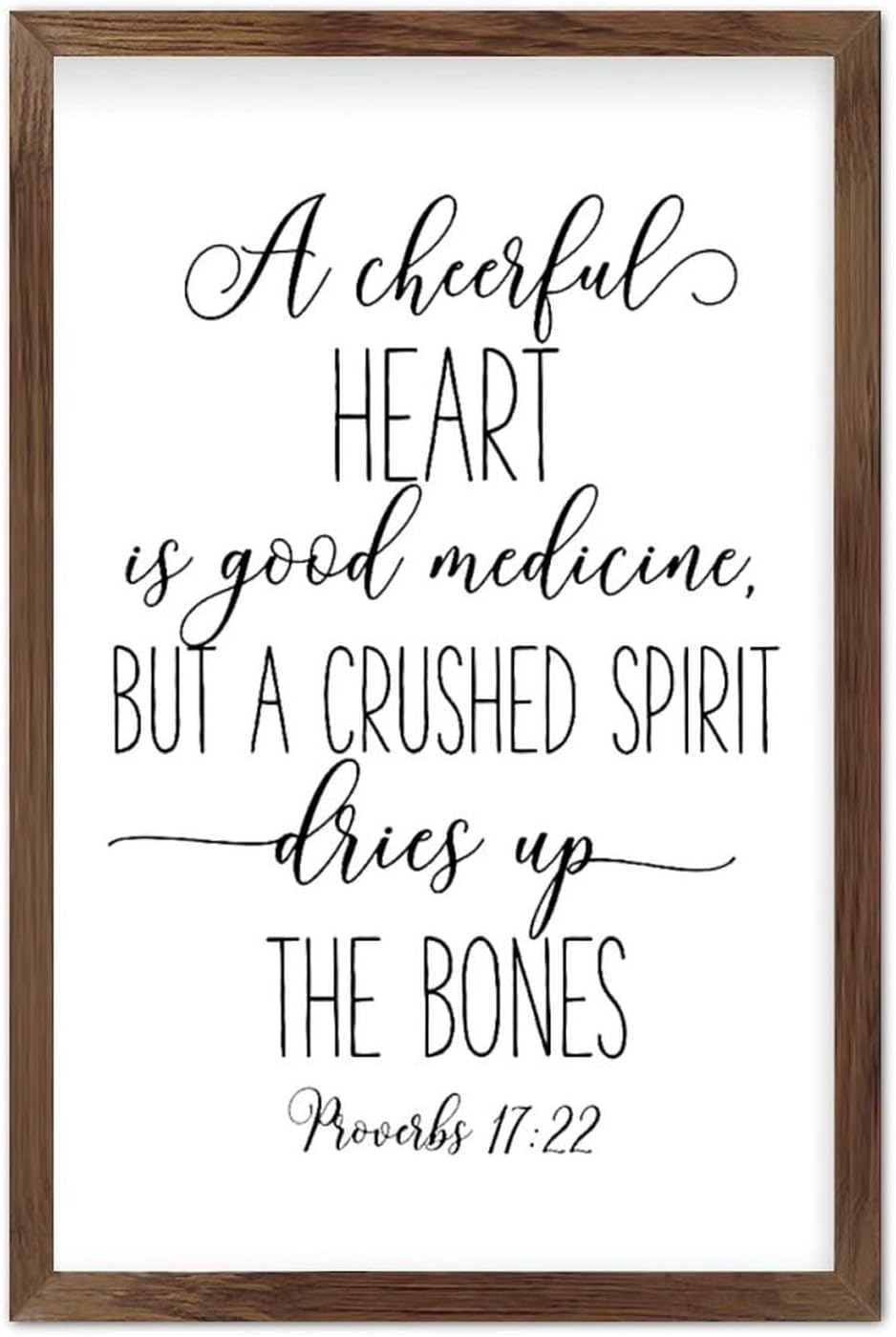 Wooden Wall Art Bible Verse a Cheerful Heart is Good Medicine Rustic Style Wooden Plaque for New Home Decor 16x20inch